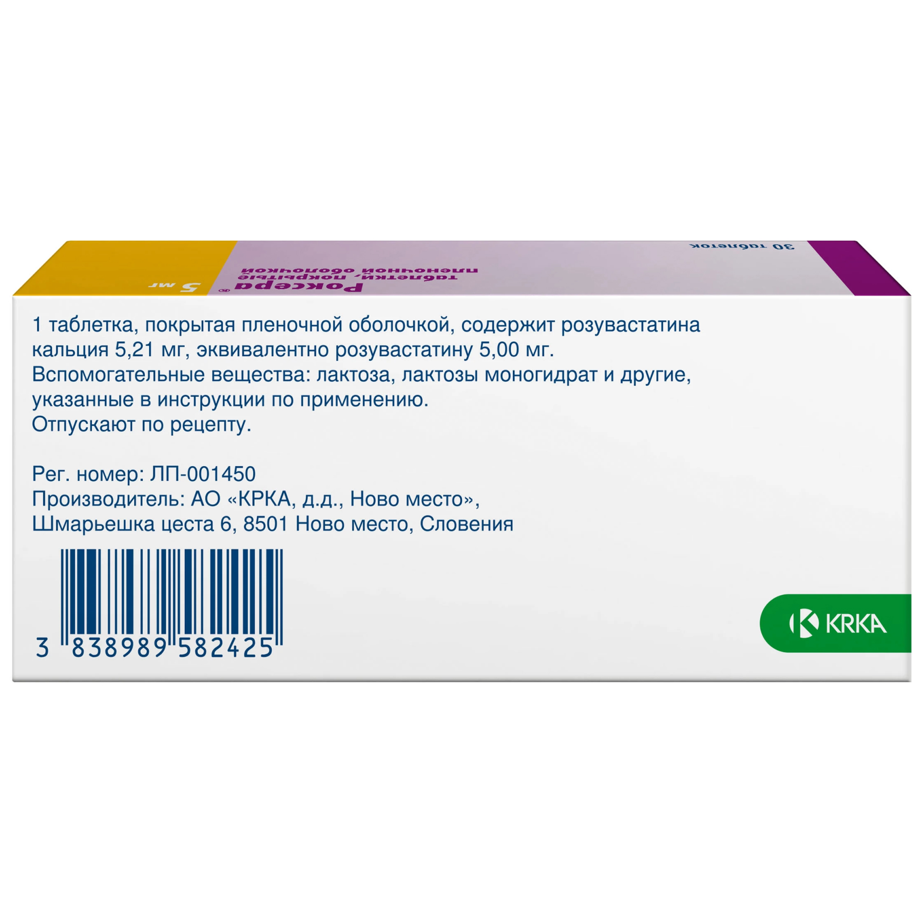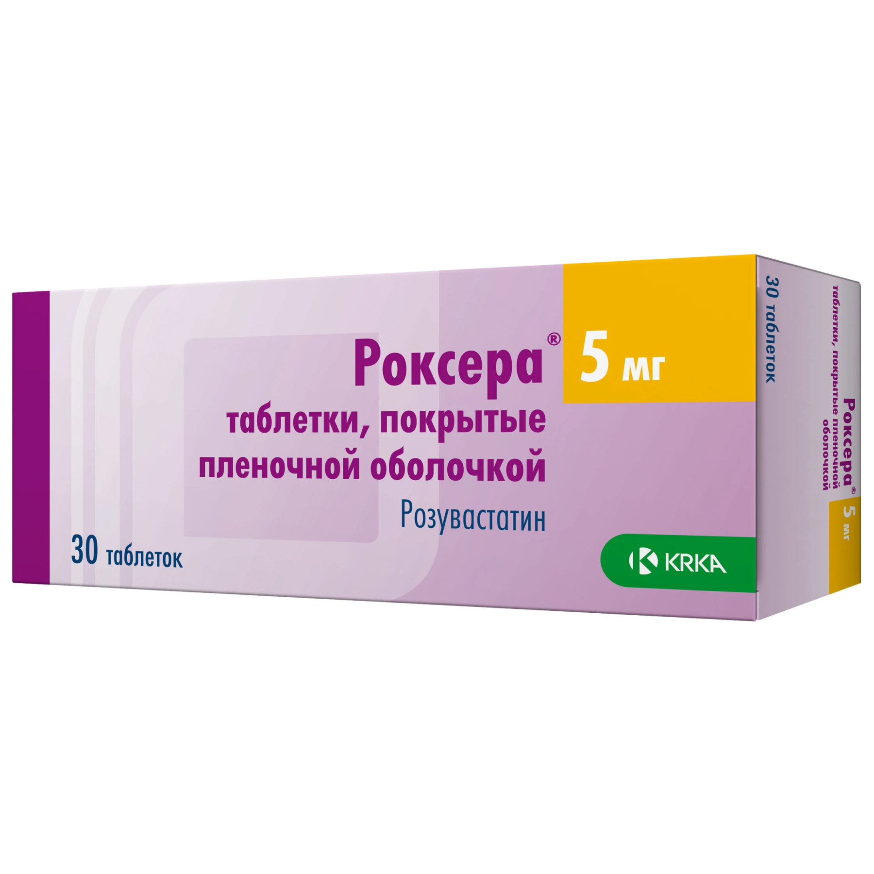 Активное вещество: розувастатин кальция 5.21 мг, что соответствует содержанию розувастатина 5 мг.