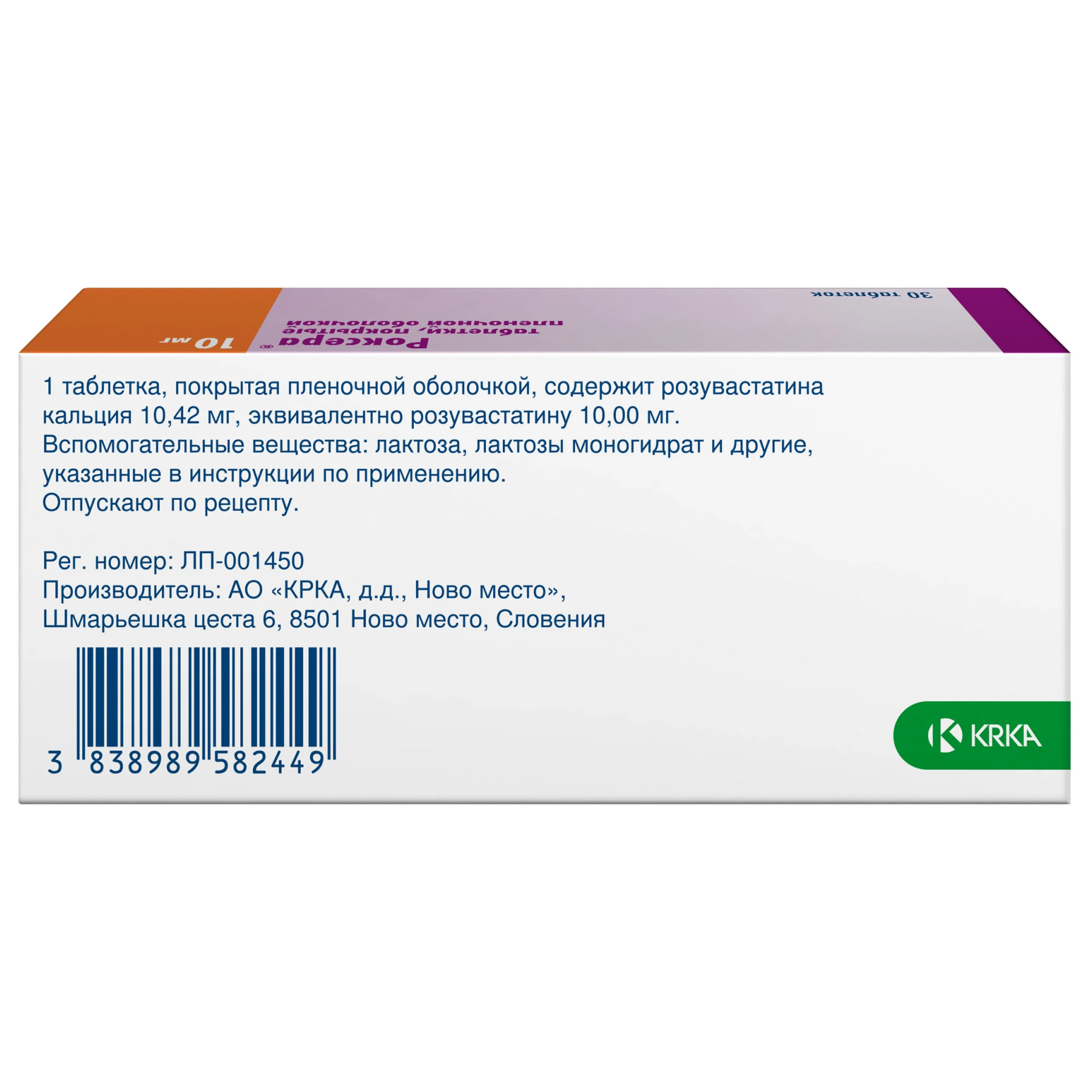 Розувастатин кальция 10.42 мг, что соответствует содержанию розувастатина 10 мг