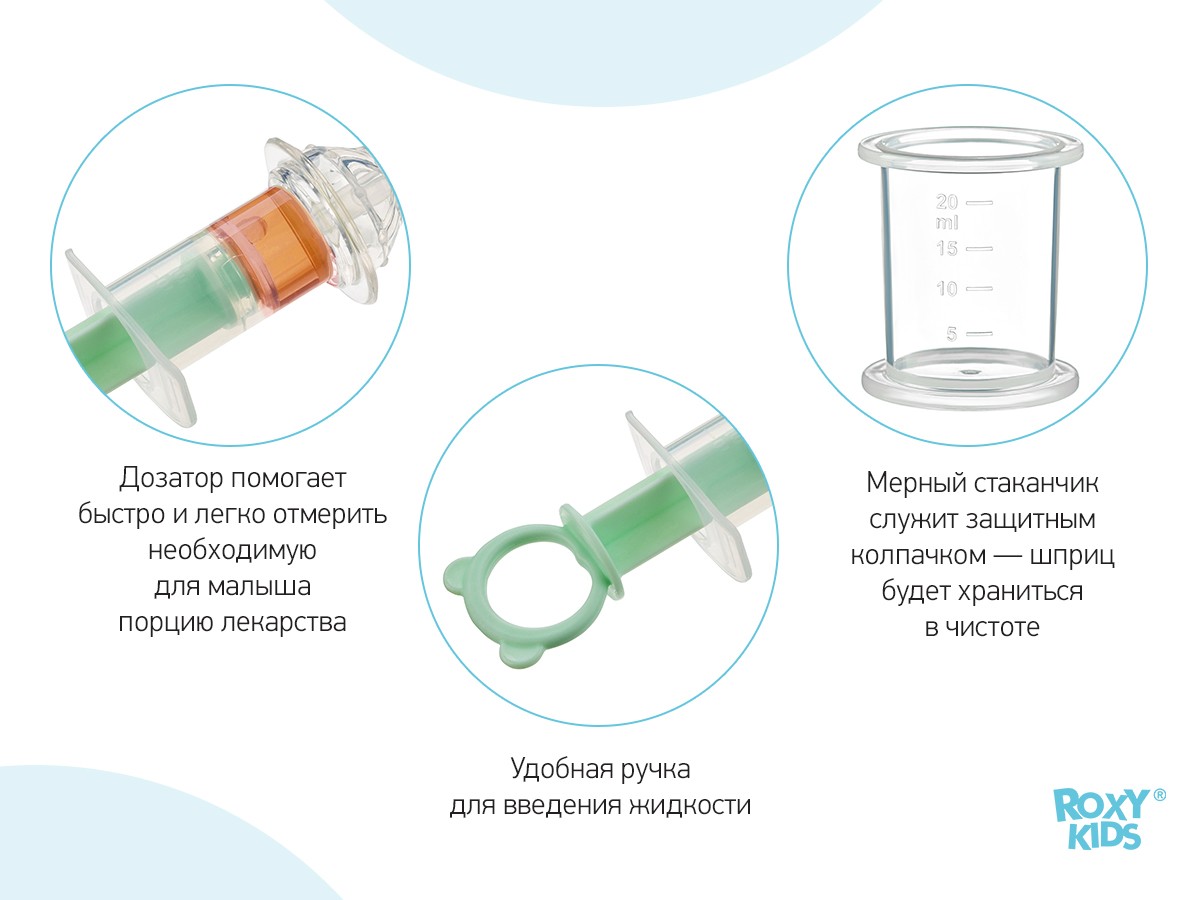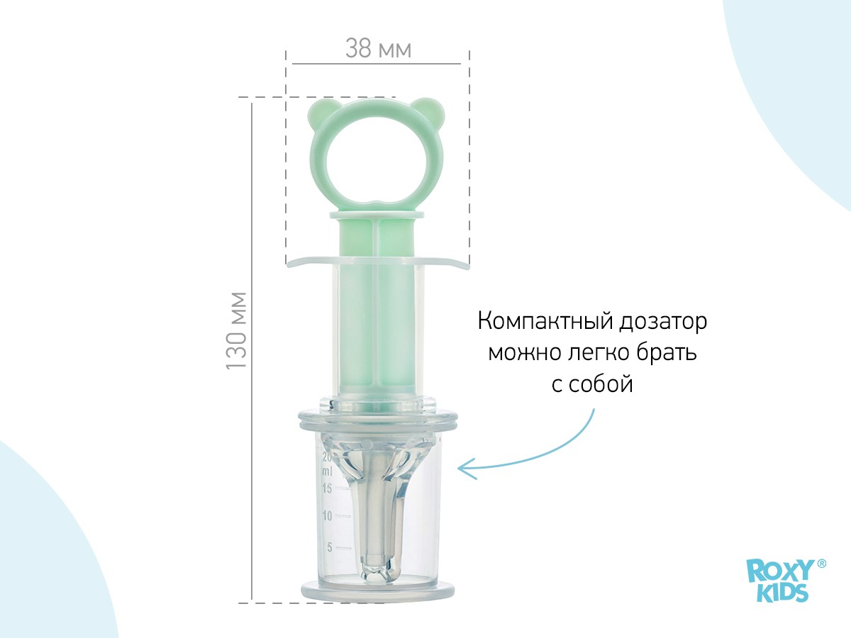 Дозатор для приема лекарств ROXY-KIDS поможет обеспечить комфортное введение малышу любых сиропов, лекарств и других жидкостей, если он отказывается их принимать. С помощью дозатора можно легко отмерить нужную порцию и контролировать скорость введения лекарства. Содержимое можно аккуратно ввести, пока ребенок будет увлеченно жевать силиконовый наконечник.