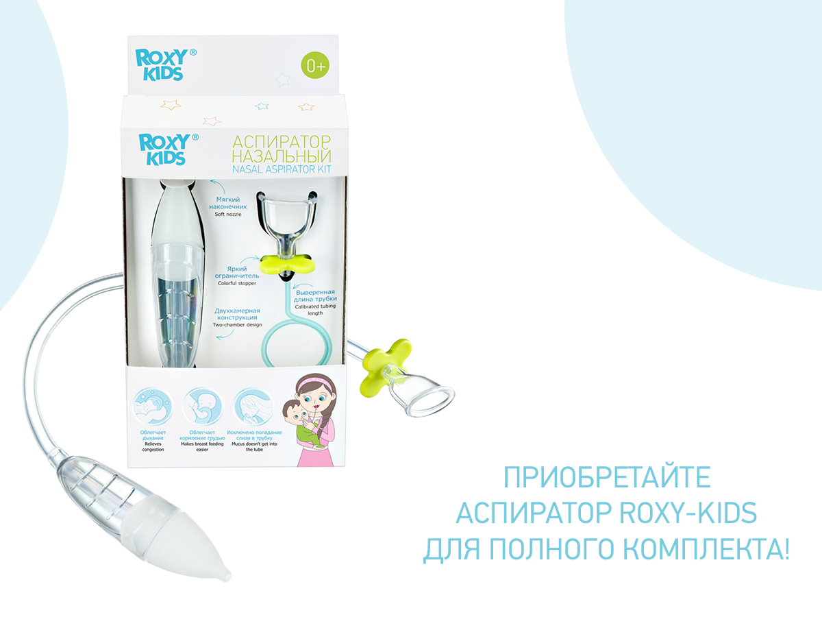 Назальный аспиратор ROXY-KIDS (в комплекте не поставляется) предназначен для очищения дыхательных путей, удаления слизистых выделений у новорожденных, грудных детей и детей младшего дошкольного возраста (до 3 лет). Анатомический мягкий наконечник и прозрачный материал изделия позволяют эффективно и легко производить эту гигиеническую процедуру.