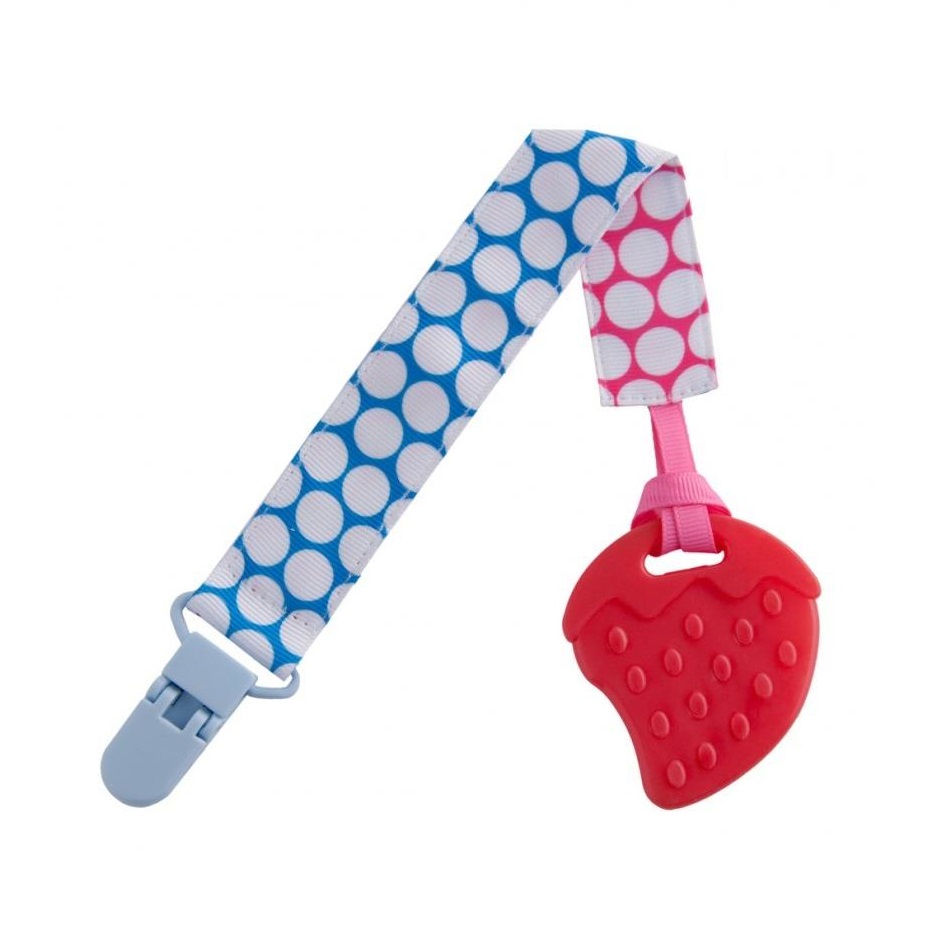Прорезыватель на держателе ROXY-KIDS в форме клубнички идеально подойдет маленьким непоседам! Если ваш малыш все время роняет грызунок, с новинкой от ROXY-KIDS это больше не будет проблемой. Наш прорезыватель надежно крепится к одежде ребенка при помощи яркого держателя.