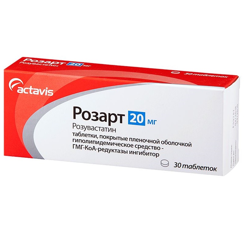 Действующее вещество: розувастатин 20 мг.