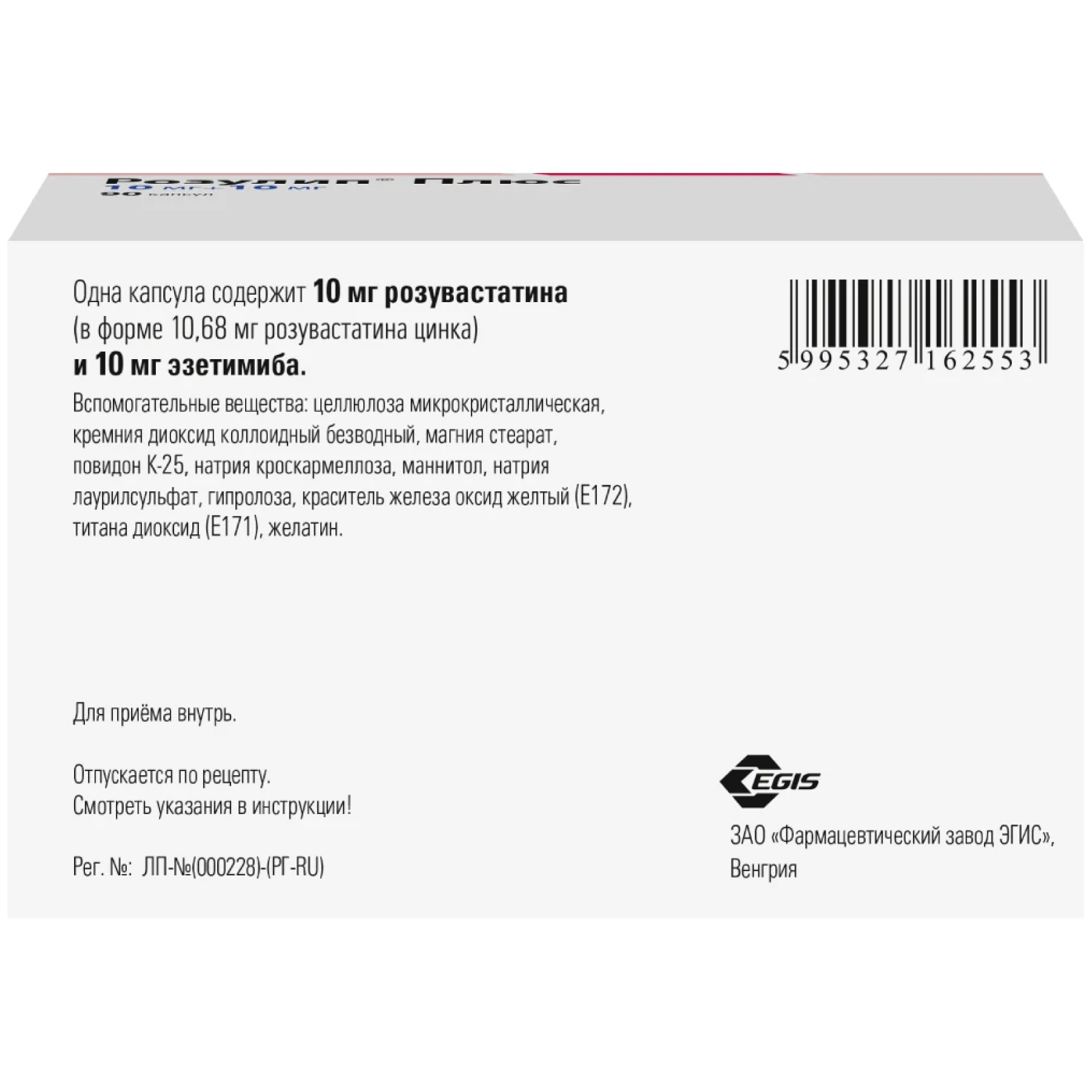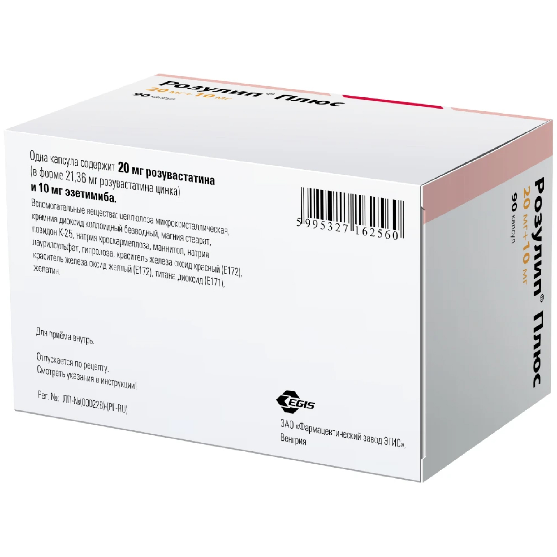 Действующие вещества: розувастатин 20 мг, эзетимиб 10 мг.