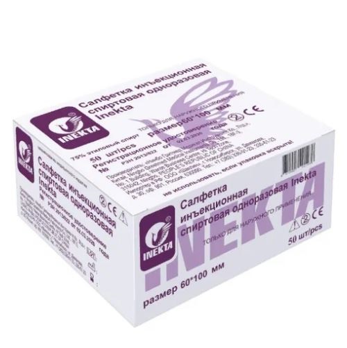 Салфетка инъекционная спиртовая одноразовая Inekta 60*100 мм предназначена для дезинфекции кожи.