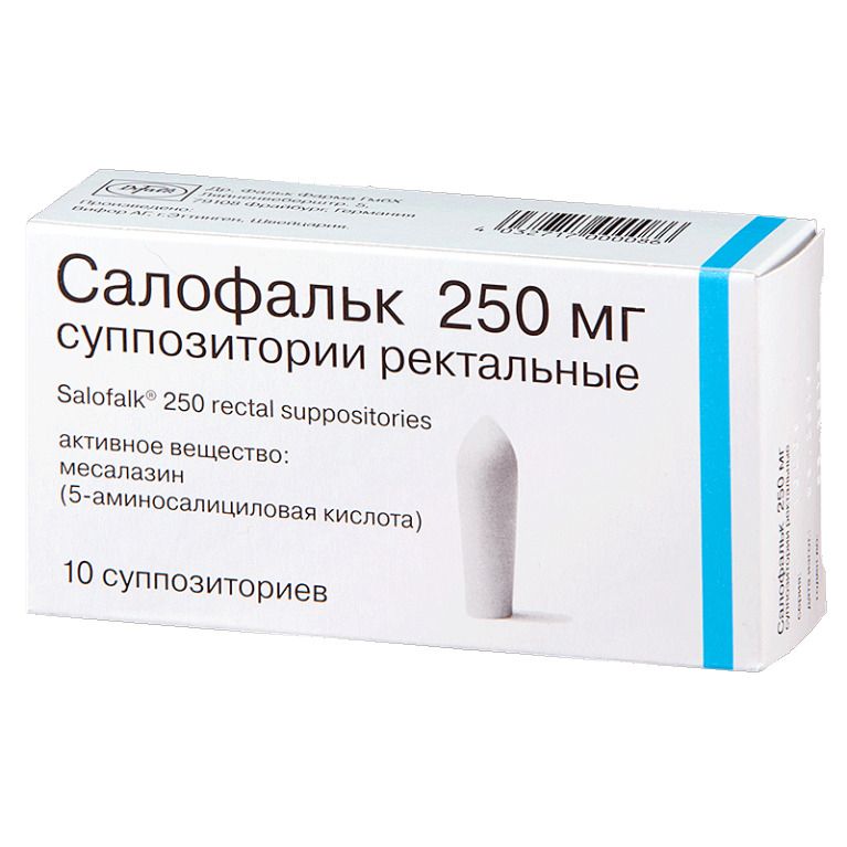 1 суппозиторий, содержащий 250 мг месалазина (Салофальк суппозитории ректальные 250 мг), три раза в сутки с целью предотвращения рецидивов.