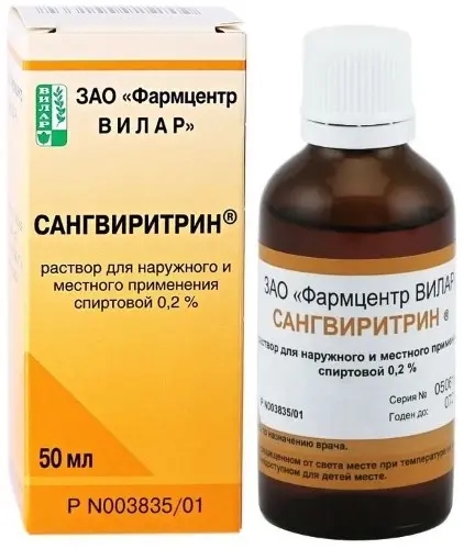 Сангвиритрин® обладает широким спектром антимикробной активности, действуя на грамположительные и грамотрицательные бактерии, дрожжеподобные и мицелиальные грибы. Активен в отношении антибиотикорезистентных штаммов микроорганизмов. В терапевтических дозах действует бактериостатически. В основе механизма противомикробного действия препарата Сангвиритрин® лежит подавление бактериальной нуклеазы, нарушение процессов проницаемости клеточных стенок, перегородок деления, строения нуклеотида.