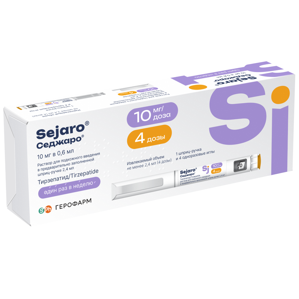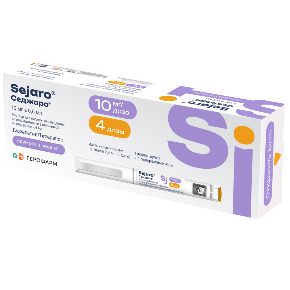 Каждая доза содержит 10 мг тирзепатида в 0,6 мл раствора.