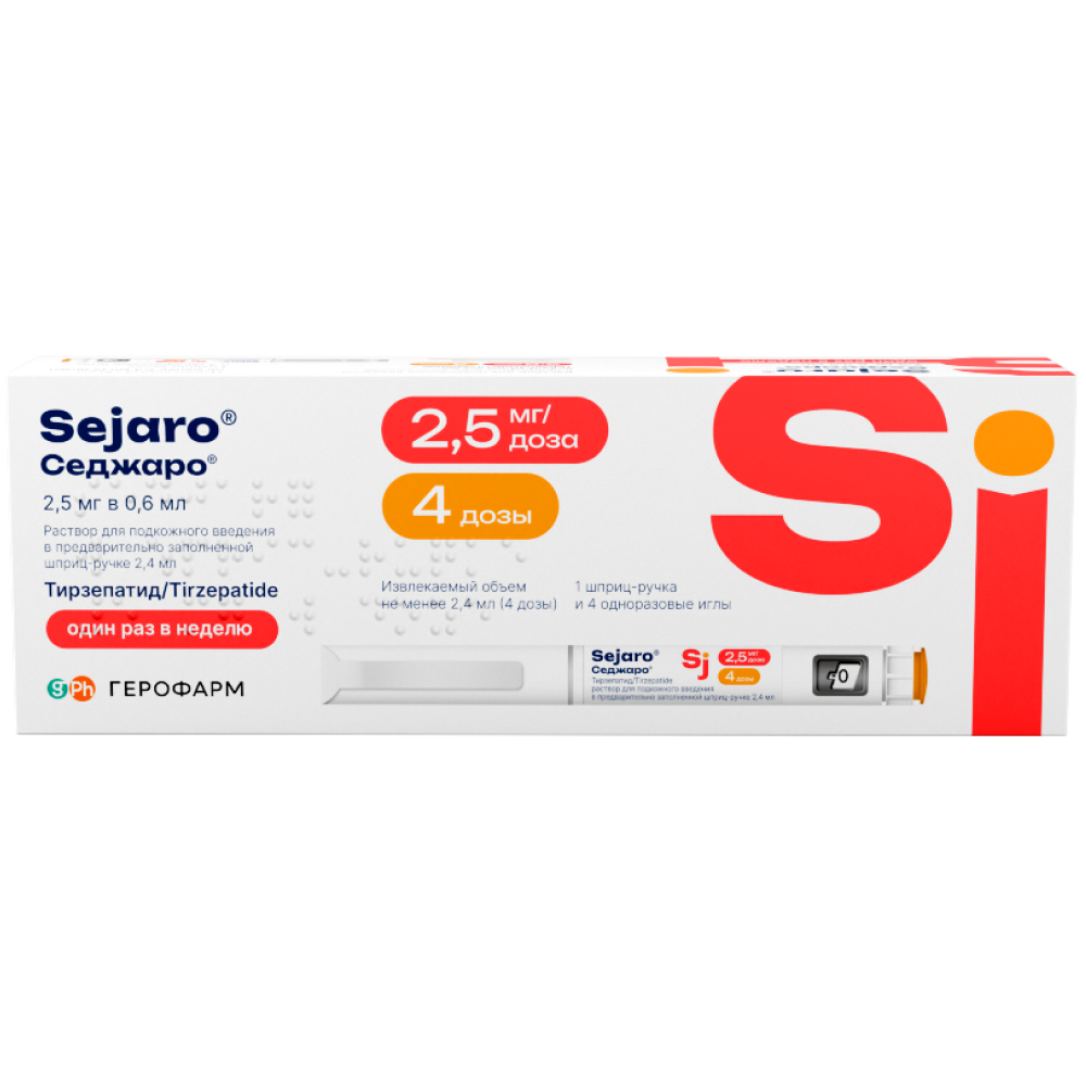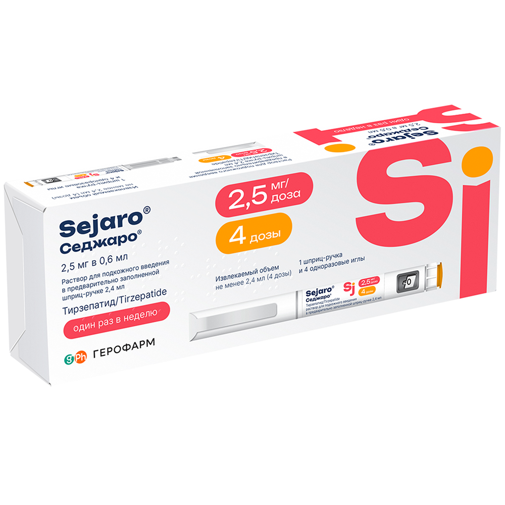 Седжаро 2,5 мг / доза 2,4 мл 1 шт раствор для подкожного введения шприц-ручка + 4 шт игла (арт. 10062689) купить по цене 5 680 ₽ в интернет аптеке в Москве и Московской области — Aptstore