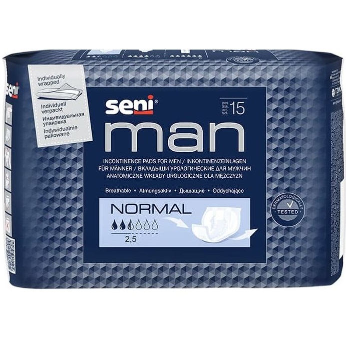 Вкладыши специальные для мужчин seni man в размере EXTRA LEVEL 3 (ЭКСТРА УРОВЕНЬ 3), 15 шт. Предназначены для впитывания выделений у мужчин. Уровень впитываемости – 3 капли. Вкладыши быстро впитывают влагу и нейтрализуют неприятный запах, обеспечивая надежную и незаметную защиту. Созданы с учетом мужской анатомии, комфортно прилегают к телу и не ограничивают свободу движения.