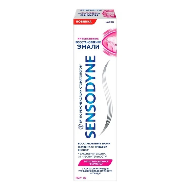 «Интенсивное восстановление эмали» - зубная паста для восстановления ослабленной эмали, защиты от кариеса и кислотной эрозии, а также снижения повышенной чувствительности 24/7. Благодаря запатентованной формуле помогает большему количеству фторида проникать в ослабленную эмаль, активно восстанавливая ее.