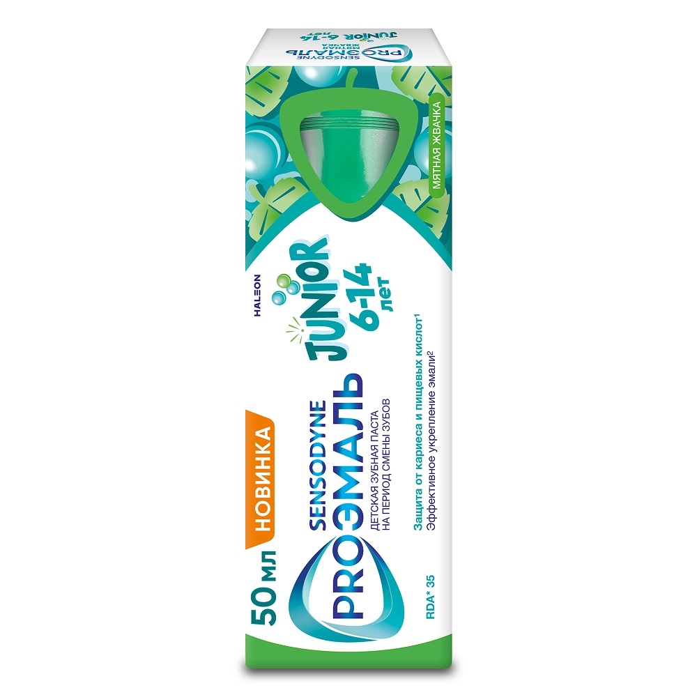 Сенсодин зубная паста proэмаль junior для детей 6-14 лет со вкусом мятная жвачка 50 мл