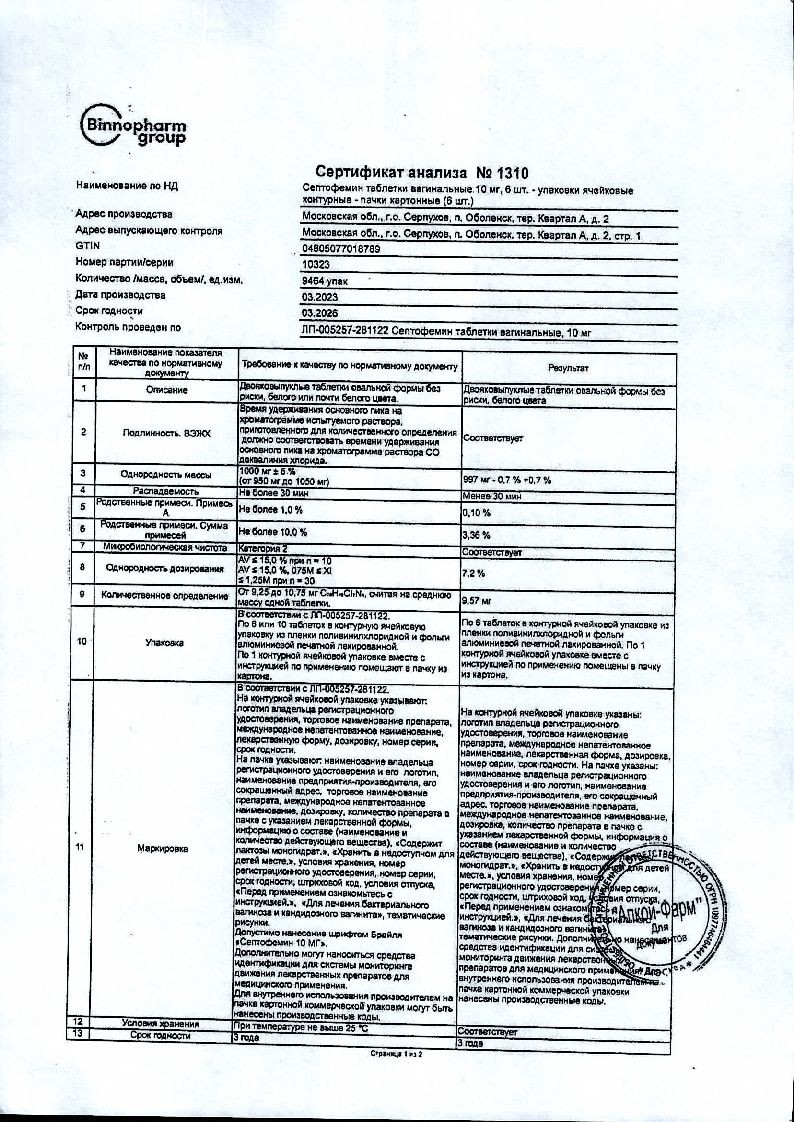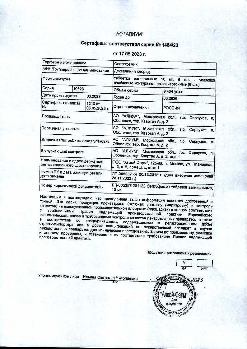 Септофемин несовместим с мылом и другими анионными поверхностно-активными веществами.