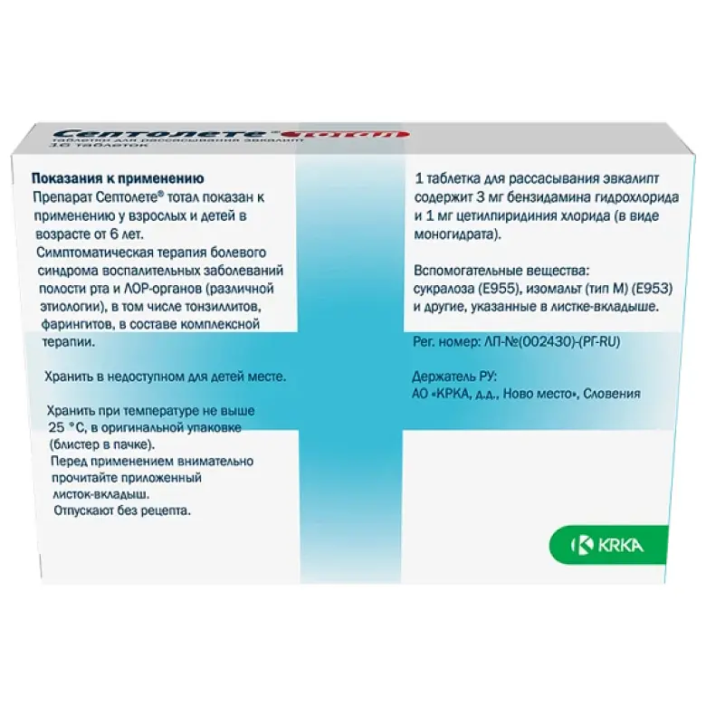 Из двух действующих веществ - цетилпиридиния хлорид и бензидамин - через слизистые оболочки всасывается только бензидамин. Поэтому цетилпиридиния хлорид не вступает в фармакокинетическое взаимодействие с бензидамином на системном уровне. Всасывание бензидамина через слизистые оболочки полости рта и глотки было показано посредством выявления действующего вещества в сыворотке крови, количество которого, тем не менее, было недостаточно для оказания системного действия. Выводится в основном почками, в большей степени в форме неактивных метаболитов.