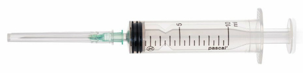 Шприц инъекционный 3-х компонентный однократного применения стерильный ТМ PASCAL'. Цилиндр полностью прозрачный для хорошей визуализации содержимого. Шкала хорошо читаемая. Расположена строго параллельно вертикальной оси цилиндра. Манжета не содержит латекс для предотвращения аллергических реакций. Игла инъекционная со стандартным срезом. Шприц упакован в индивидуальную блистерную упаковку с отогнутым краем, которая вскрывается с небольшим усилием, что предотвращает самопроизвольное вскрытие, и без образования бумажной бахромы.
