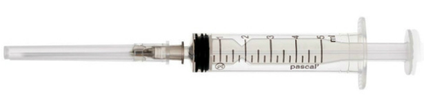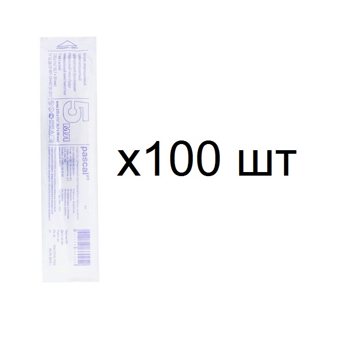Шприц инъекционный 3-х компонентный однократного применения стерильный ТМ PASCAL'. Цилиндр полностью прозрачный для хорошей визуализации содержимого. Шкала хорошо читаемая. Расположена строго параллельно вертикальной оси цилиндра. Манжета не содержит латекс для предотвращения аллергических реакций. Игла инъекционная со стандартным срезом. Шприц упакован в индивидуальную блистерную упаковку с отогнутым краем, которая вскрывается с небольшим усилием, что предотвращает самопроизвольное вскрытие, и без образования бумажной бахромы.
