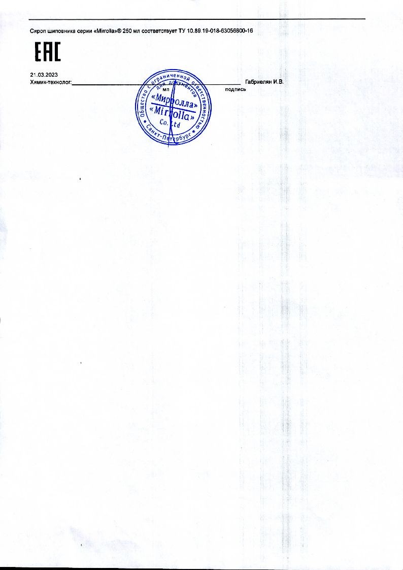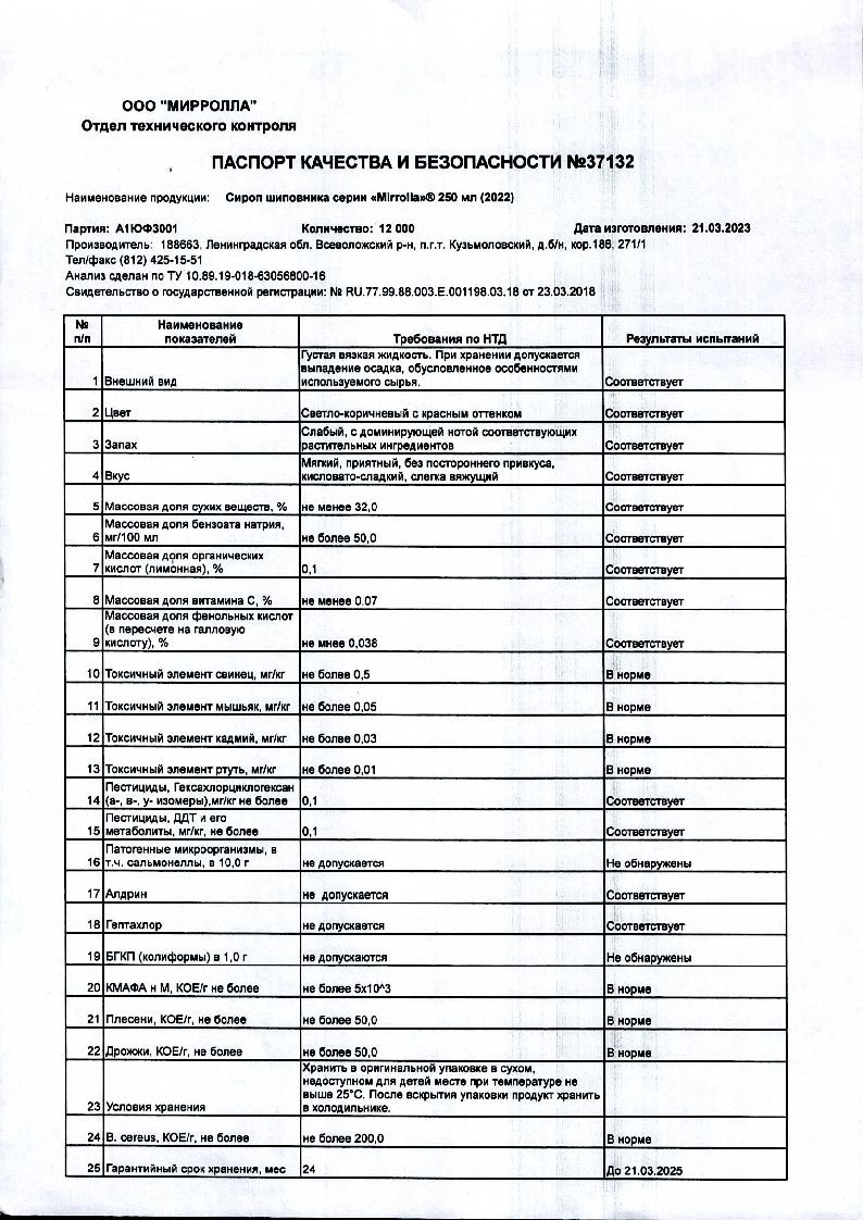 Сахар, вода питьевая, экстракт плодов шиповника майского, регулятор кислотности - лимонная кислота, аскорбиновая кислота, консервант - бензоат натрия.