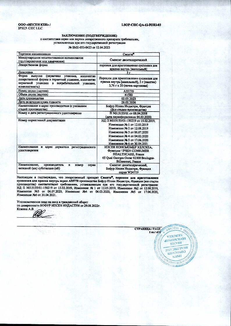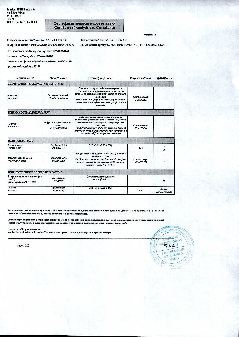 Каждый пакетик содержит 3 г смектита диоктаэдрического.