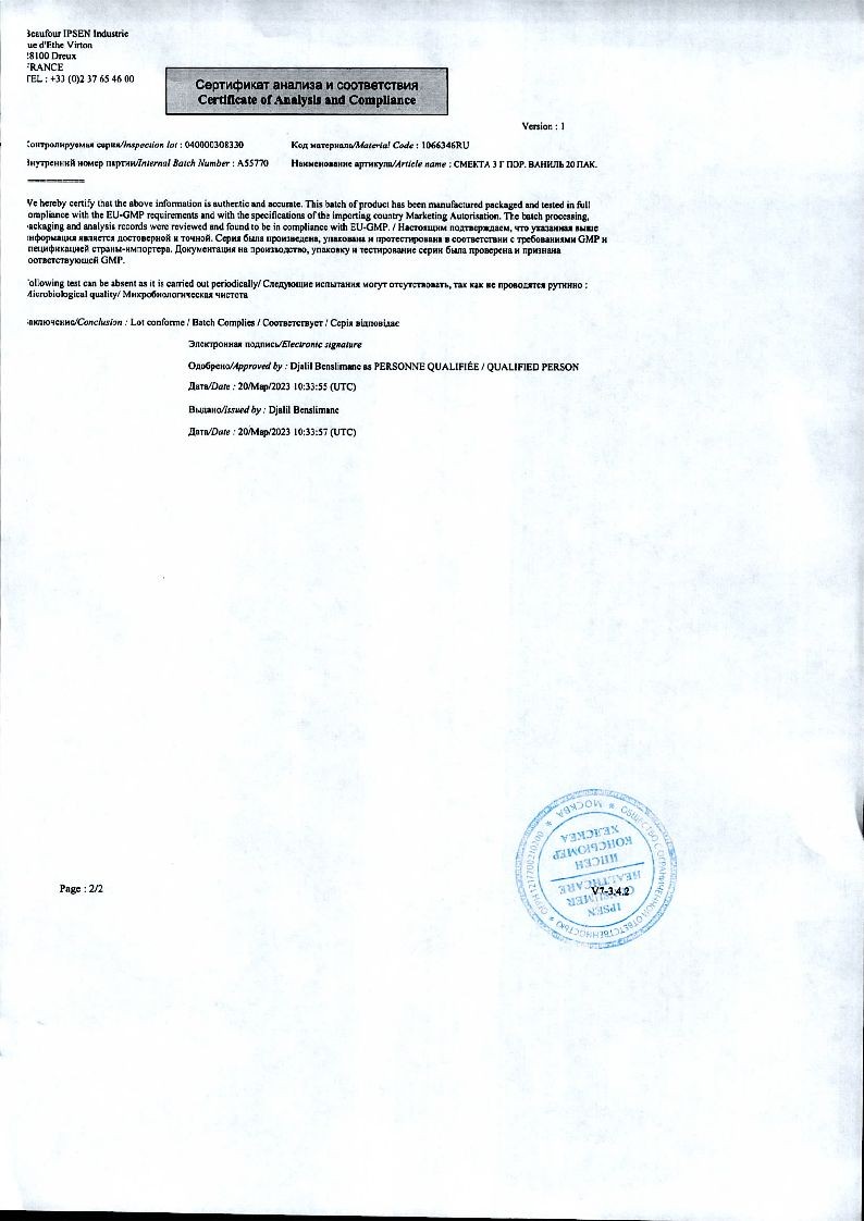 Порошок для приготовления суспензии для приема внутрь (ванильный):