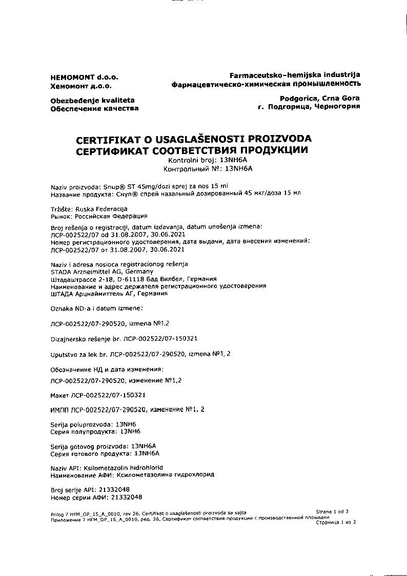 Одновременное применение ксилометазолина с ингибиторами МАО, трициклическими и тетрациклическими антидепрессантами, другими местными сосудосуживающими средствами (деконгестантами), а также другими препаратами, повышающими АД, может привести к повышению АД, поэтому одновременное применение данных лекарственных препаратов противопоказано. Если пациент применяет вышеперечисленные или другие лекарственные препараты (в т.ч. безрецептурные) перед применением препарата Снуп® следует проконсультироваться с врачом.
