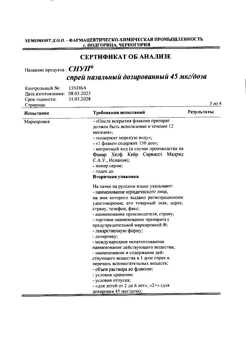 Детям в возрасте с 2-х до 6 лет по 1 впрыскиванию Снуп спрея назального 0,05 % в каждую ноздрю (при необходимости можно повторить), до трёх раз в день.