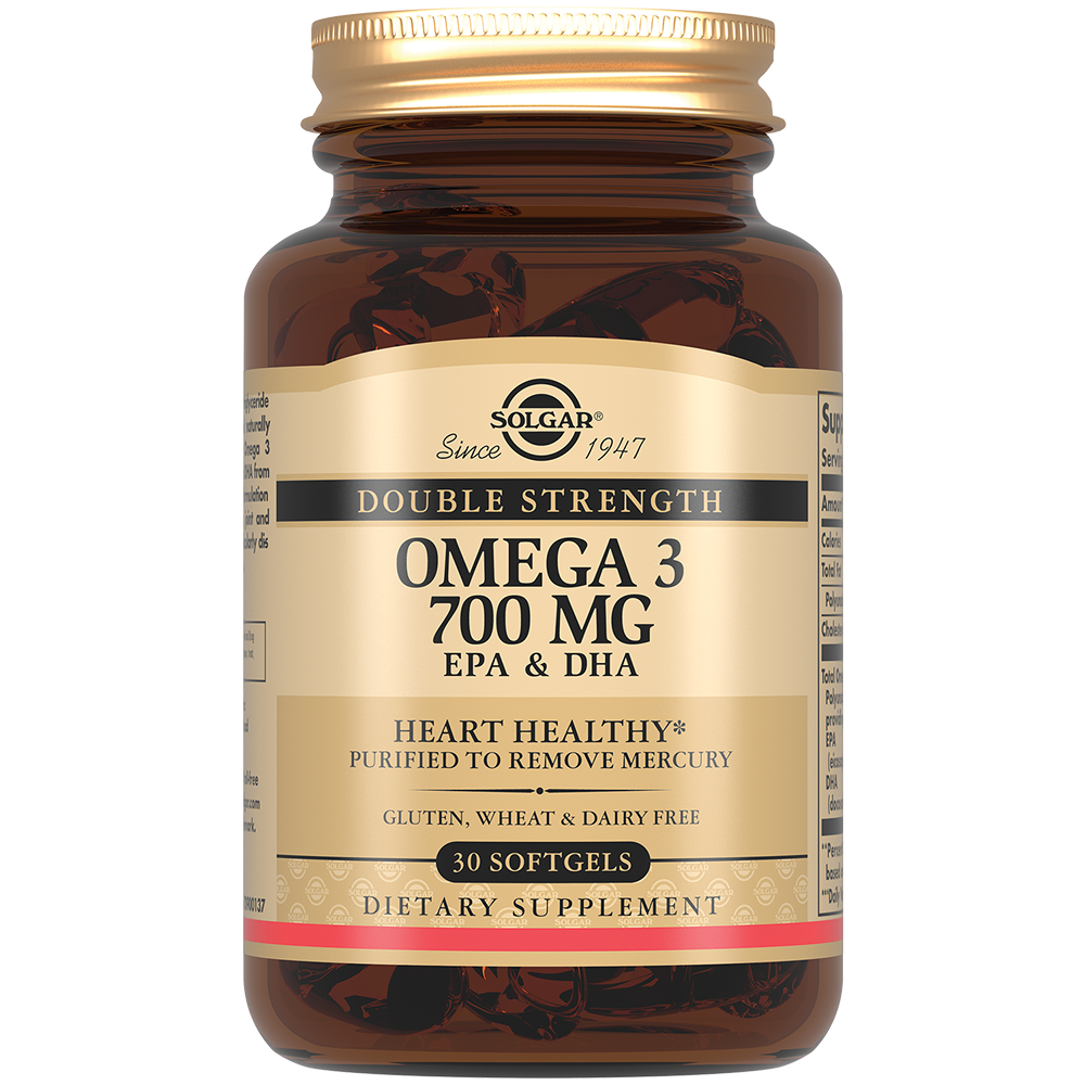 Двойная Омега -3 700 мг ЭПК и ДГК (Double Strength Omega-3 700 mg EPA & DHA Softgels) - это натуральный высококонцентрированный источник Омега-3 полиненасыщенных жирных кислот ЭПК (EPA) и ДГК (DHA) из холоднолюбивой рыбы.