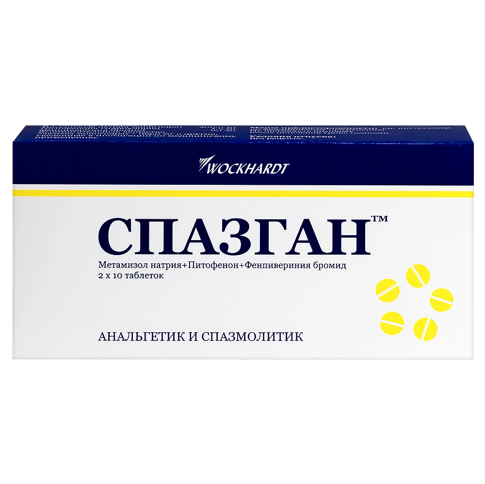 Активные вещества: метамизол натрия моногидрат 500 мг, питофенона гидрохлорид 5 мг, фенпивериния бромид 0.1 мг;