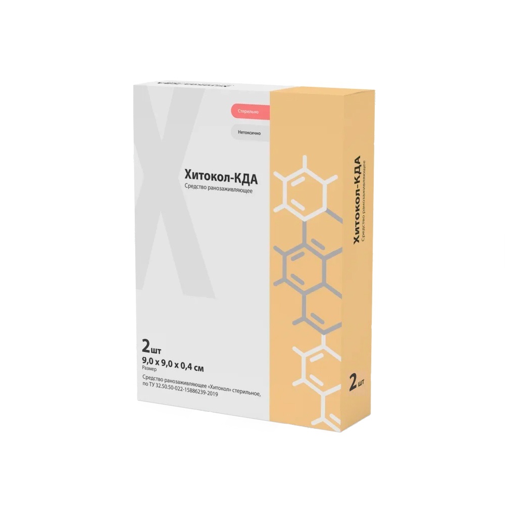 Исполнения «Хитокол-КДА» с диоксином и анилокаином предназначен для заживления инфицированных ссадин, порезов, ушибленных, рваных, сильно или умеренно экссудирующих, плоских и глубоких, гранулирующих вялотекущих, долго незаживающих ран различной этиологии в стадии регенерации, трофических язв, пролежней, ожогов II–IIIа степеней, для временного закрытия после хирургической обработки ожоговых ран IIIб степени с целью их подготовки к аутодермопластике и донорских участков, а также для ускорения эпителизации очагов эрозии, язв на коже и уменьшения вероятности их разрастания при буллезном эпидермолизе.
