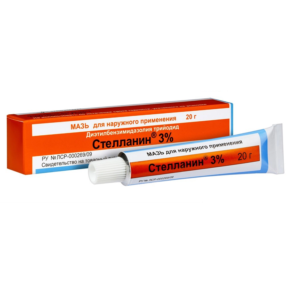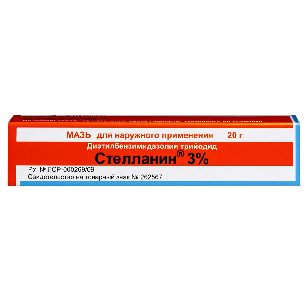 Активным компонентом препарата Стелланин является 1,3- диэтилбензимидазолия трийодид. Механизм фармакологической активности препарата заключается в непосредственном регенерационном действии 1,3- диэтилбензимидазолия на поврежденные кожные покровы. Активный йод, входящий в состав препарата, инактивирует белки бактериальной стенки и ферментные белки бактерий, оказывая тем самым бактерицидное действие. Стелланин защищает поверхность раны от инфекций, подавляет течение инфекционного процесса и способствует заживлению.