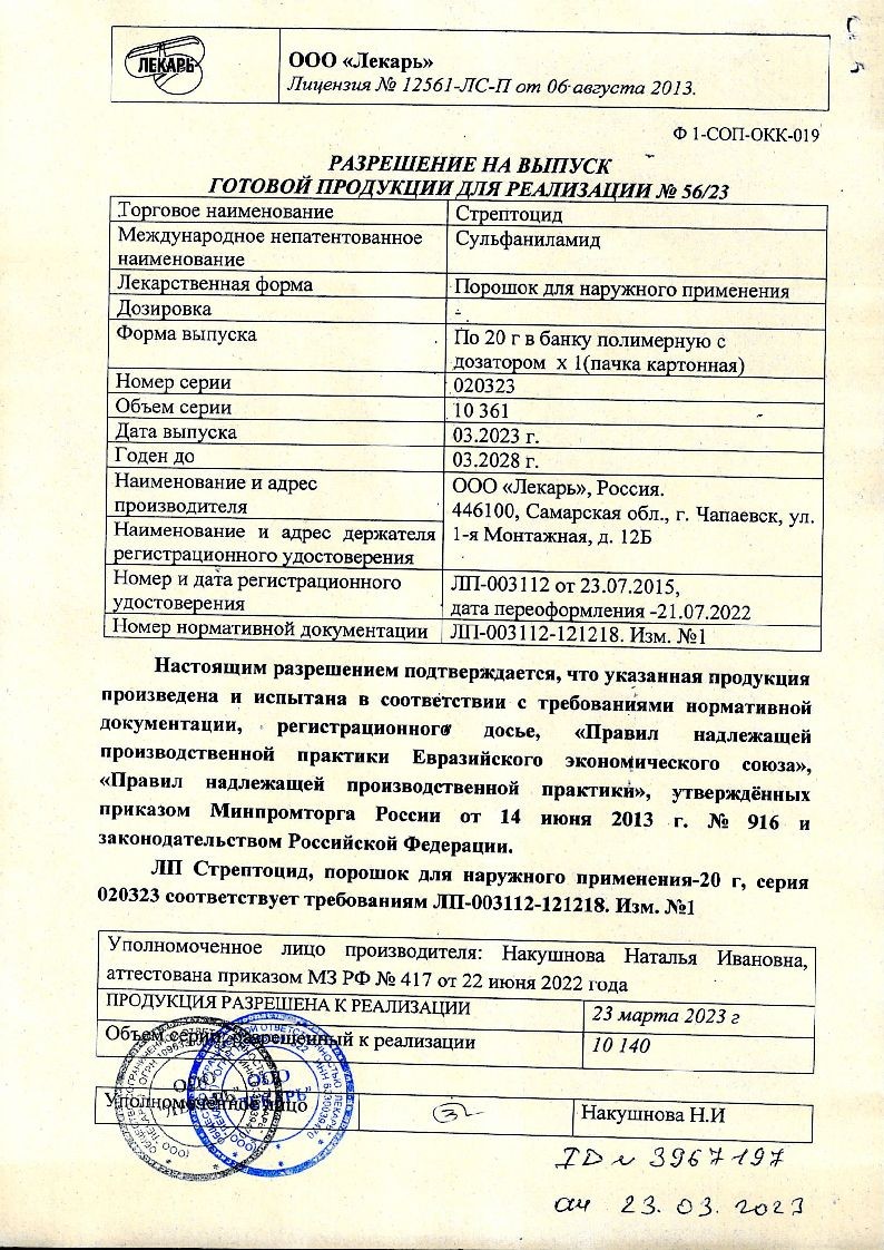 Стрептоцид - противомикробное бактериостатическое средство, сульфаниламид.