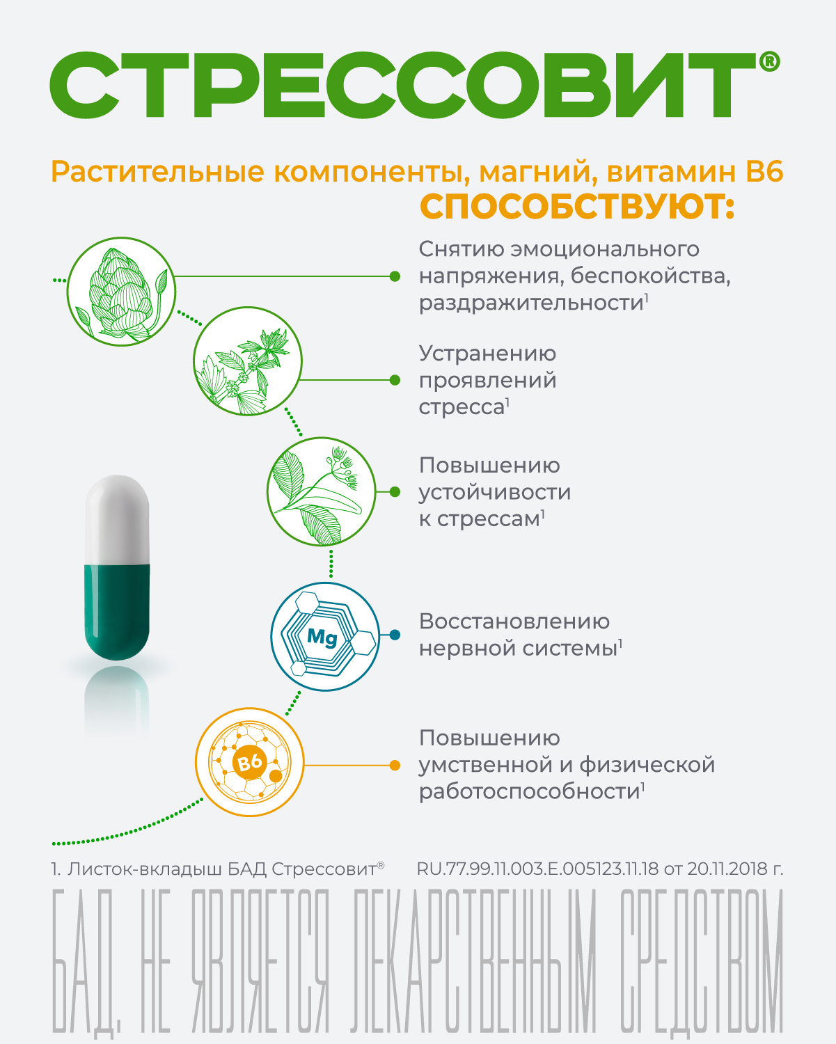 СТРЕССОВИТ – комплекс компонентов, способствующих снижению психоэмоционального напряжения, снятию стресса, улучшению функционирования и восстановлению нервной системы, улучшению общего самочувствия и повышению работоспособности.