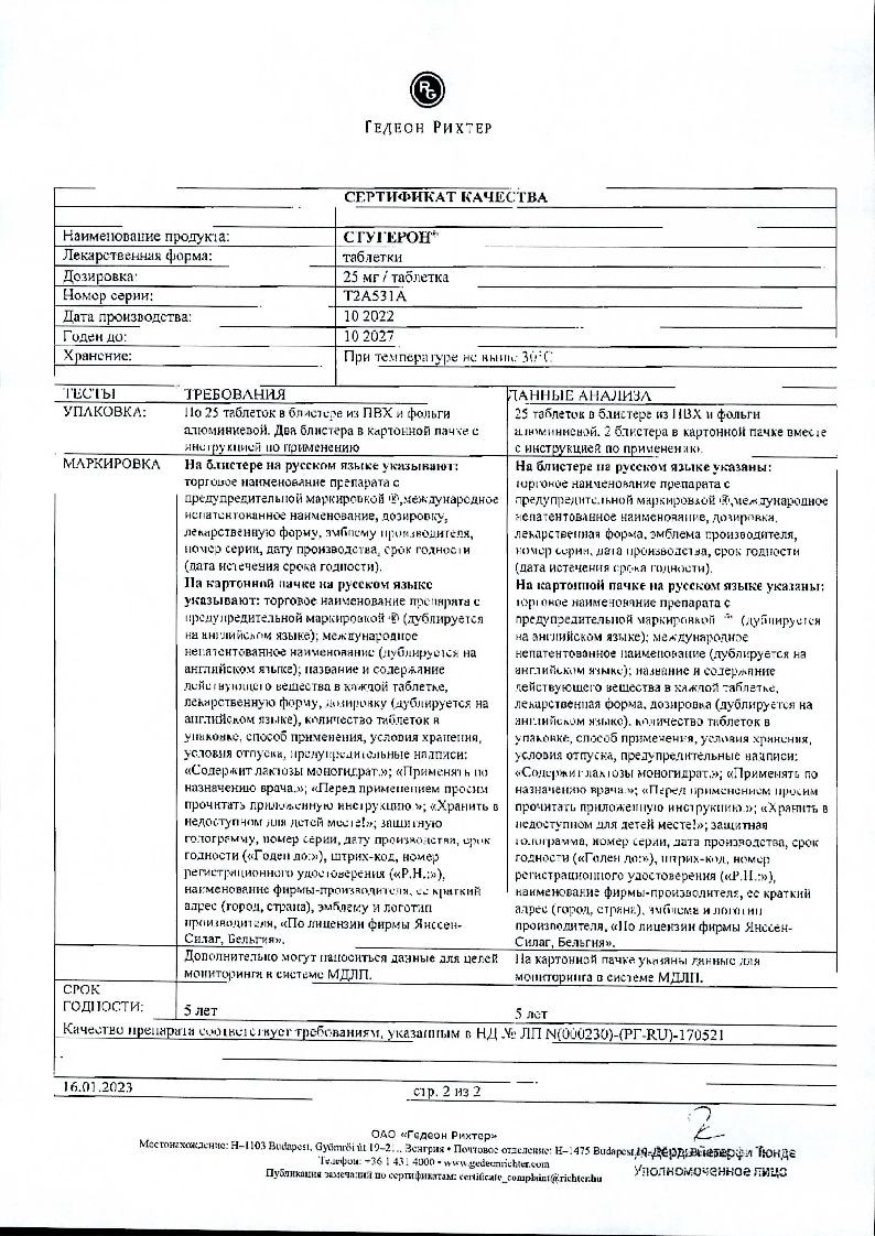 В случае непереносимости лактозы следует учитывать, что каждая таблетка препарата Стугерон® содержит 175 мг лактозы моногидрата. Препарат не следует принимать пациентам с такими редкими наследственными заболеваниями, как непереносимость галактозы, лактазная недостаточность или глюкозо-галактозная мальабсорбция.