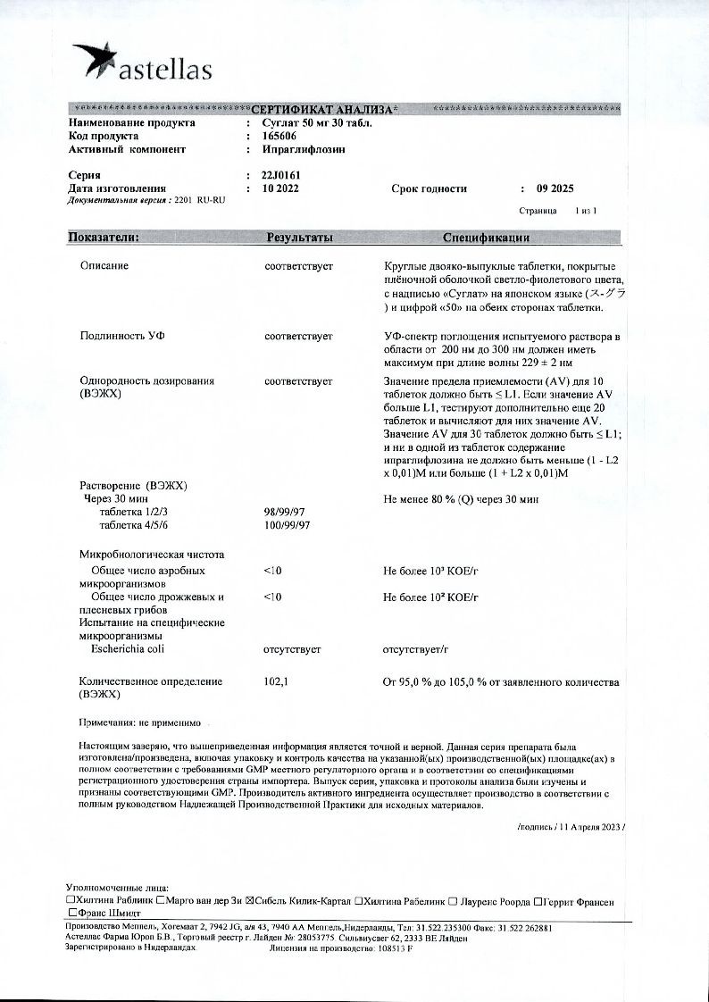 Нежелательные реакции представлены в виде таблицы на основании объединенного анализа 12 плацебо-контролируемых исследований продолжительностью 12, 16 или 24 недели, где 1209 пациентов получали ипраглифлозин в дозе 50 мг, а 796 пациентов - плацебо, и классифицированы в соответствии с системно-органными классами (СОК) и частотой. Определение частоты основано на случаях нежелательных реакций у пациентов, получавших ипраглифлозин, возникших во время лечения.