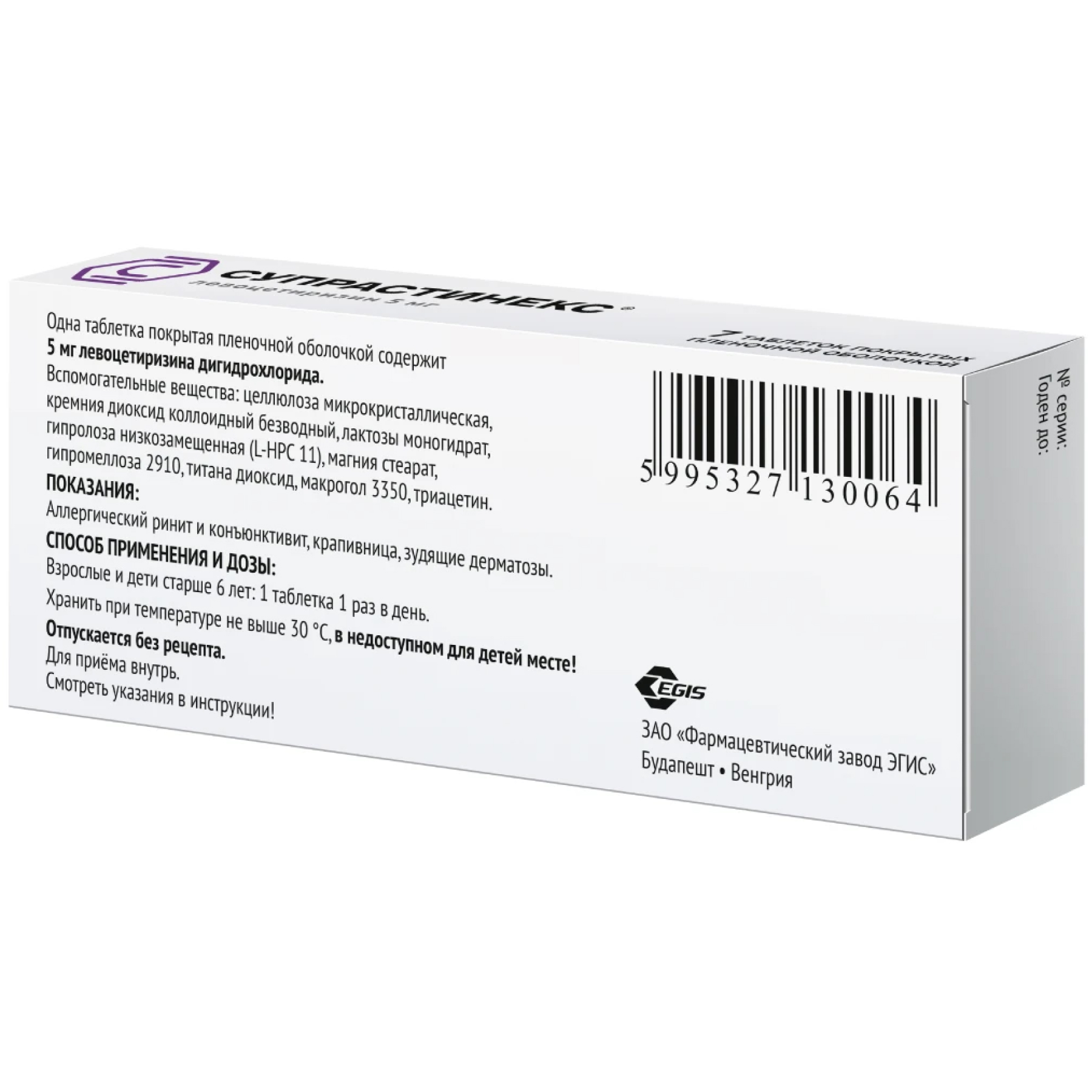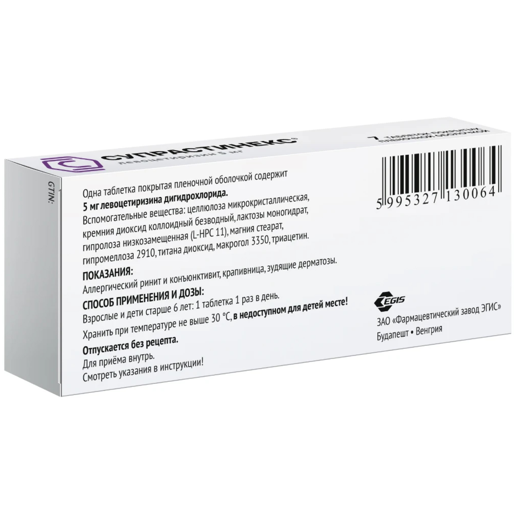 Фармакокинетические параметры левоцетиризина изменяются линейно и практически не отличаются от фармакокинетики цитиризина.