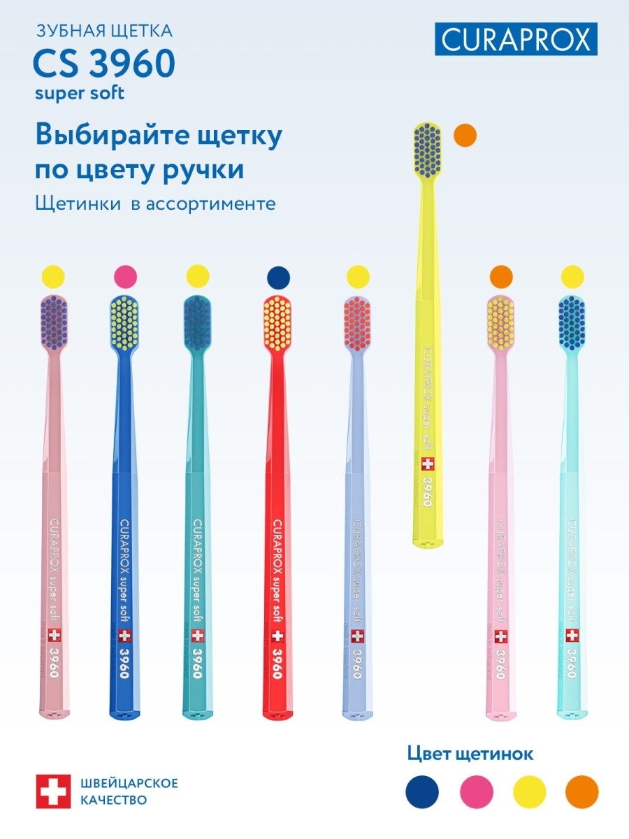 Зубная щетка CURAPROX CS 3960 Super Soft рекомендована людям, привыкшим чистить зубы, оказывая большое давление на зубную эмаль и десны, а также людям с повышенной чувствительностью и признаками пародонтита.