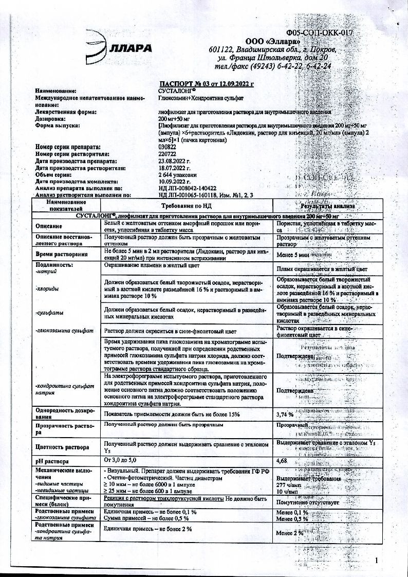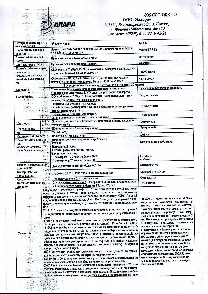 · гиперчувствительность к глюкозамину, хондроитина сульфату, лидокаина гидрохлориду или любому из вспомогательных веществ;