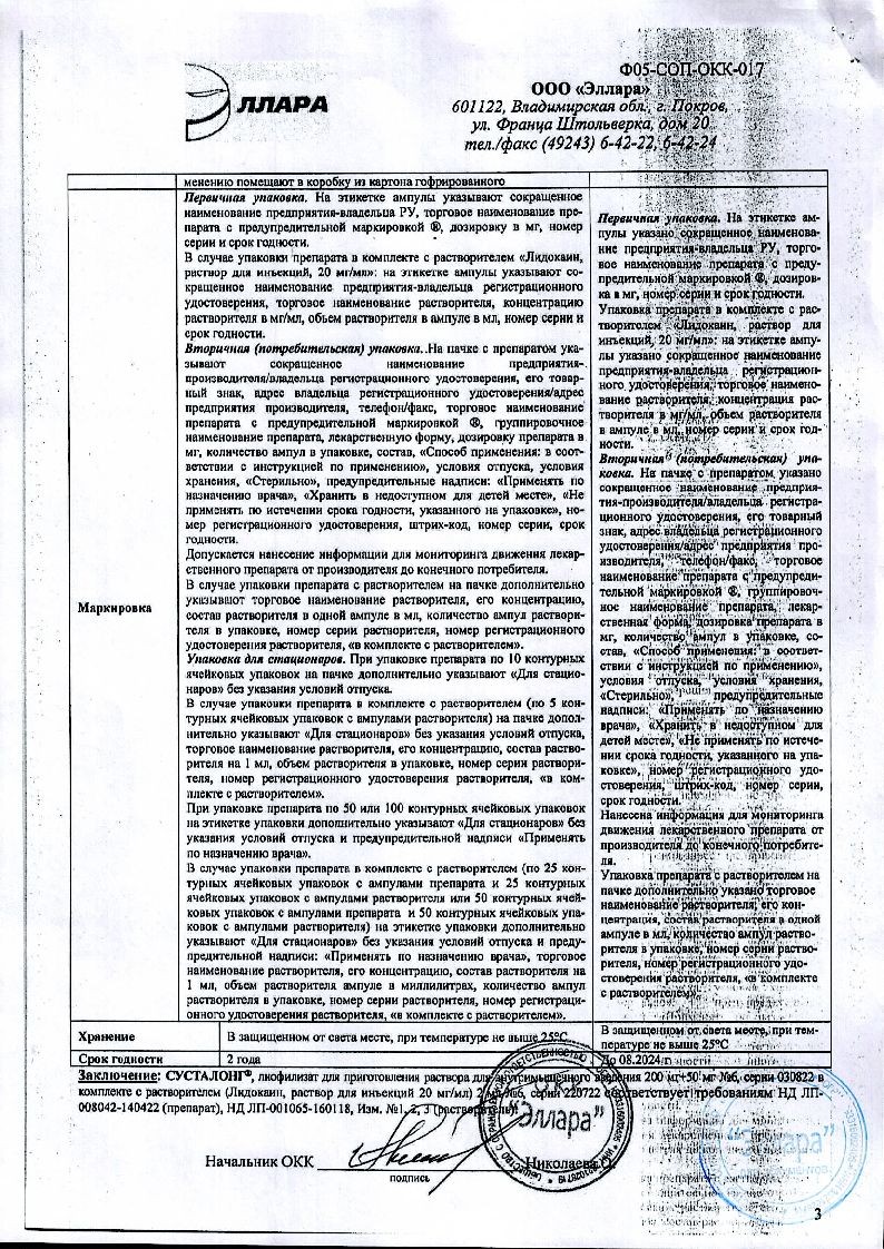 В случае упаковки препарата без растворителя, для приготовления восстановленного раствора в качестве растворителя используют «Лидокаин, раствор для инъекций,
