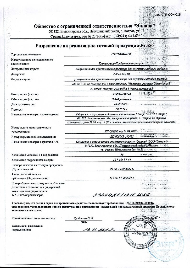 При непереносимости морепродуктов вероятность развития аллергических реакций на препарат СУСТАЛОНГ® возрастает.