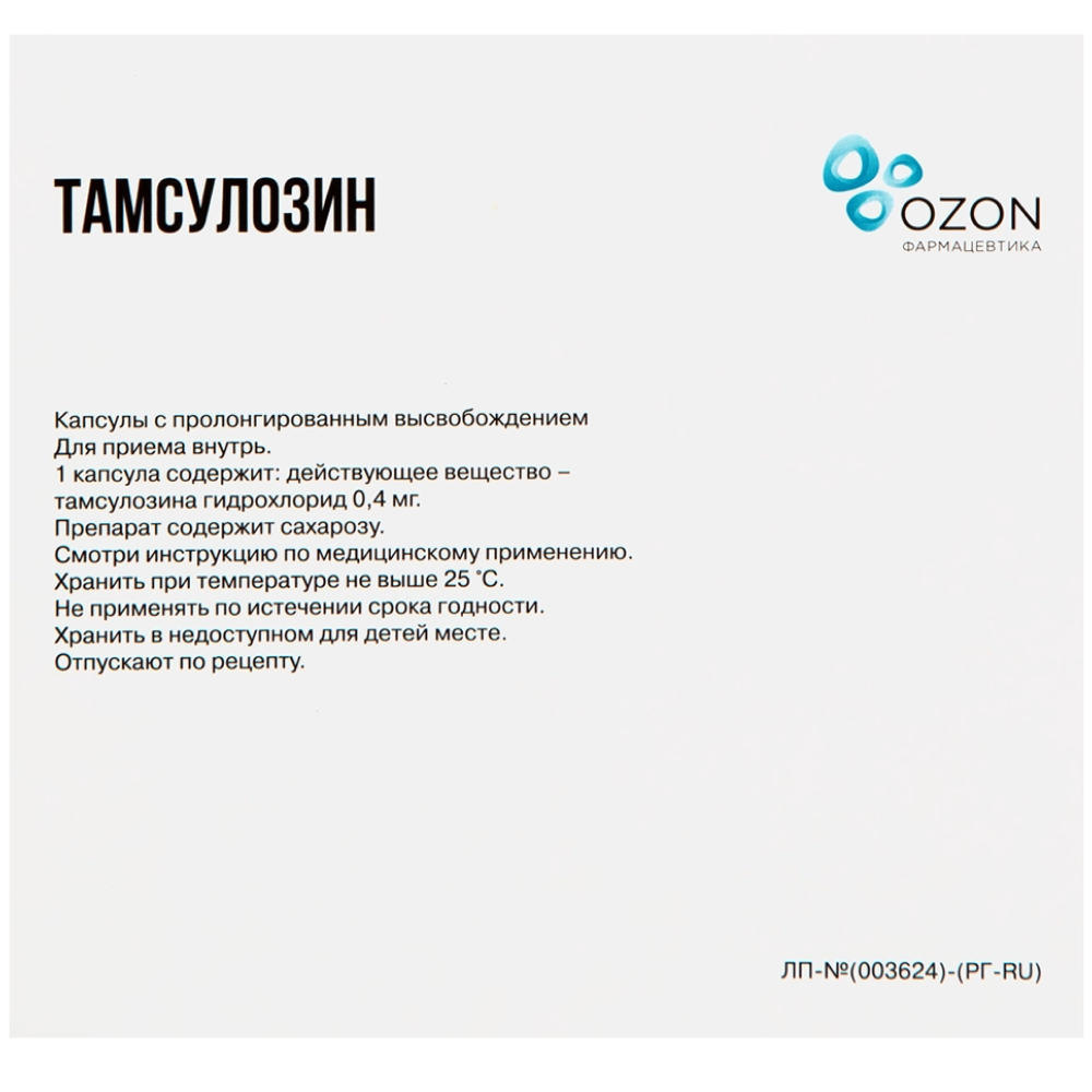 Действующее вещество: тамсулозина гидрохлорид - 0,4 мг.
