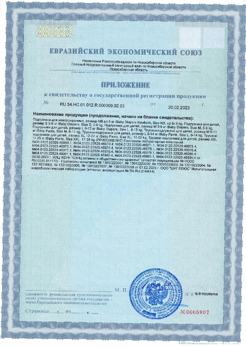 - Суперабсорбент от японского производителя Sumitomo гарантирует мгновенную впитываемость и равномерное распределение влаги по всей поверхности подгузника.