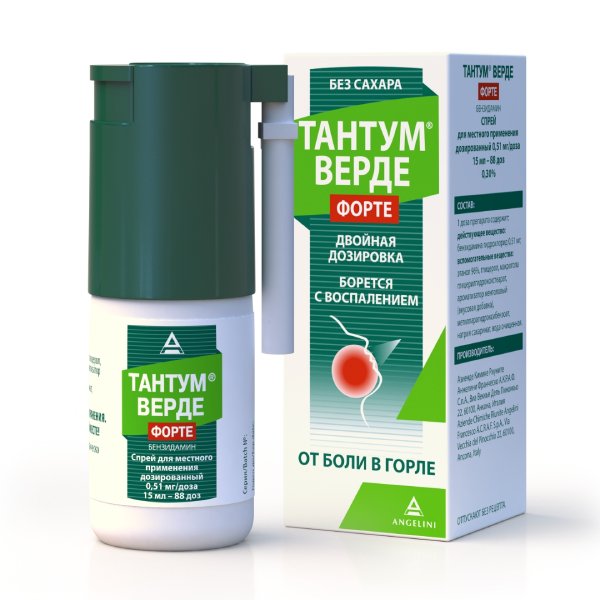 При применении препарата Тантум® Верде Форте возможно развитие реакций гиперчувствительности. В этом случае рекомендуется прекратить лечение и проконсультироваться с врачом для назначения соответствующей терапии.