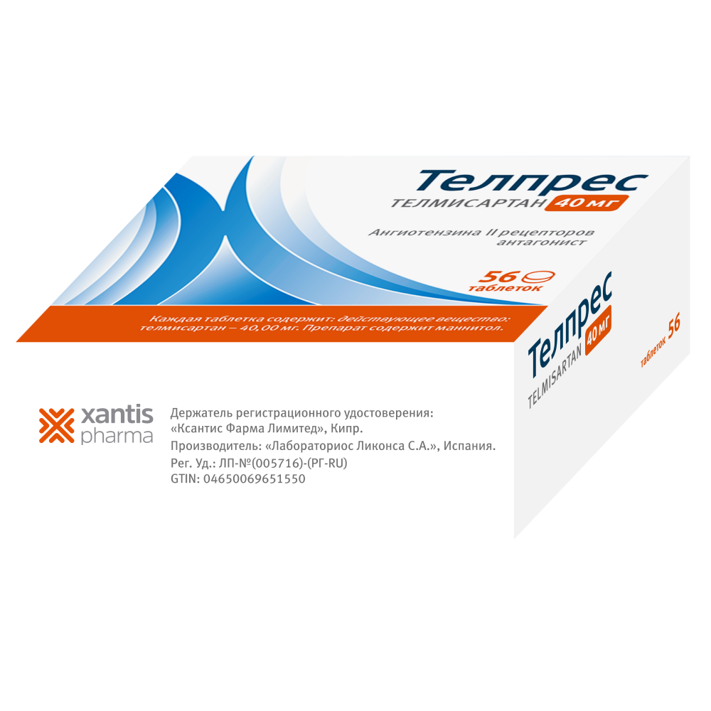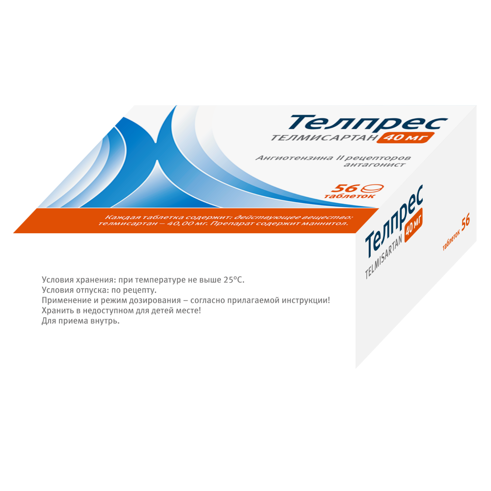 Для взрослых суточная доза составляет 20-40 мг (1 раз/сут). У некоторых пациентов гипотензивный эффект может быть достигнут при дозе 20 мг/сут. В случаях, когда терапевтический эффект не достигается, максимальная рекомендованная доза препарата Телпрес может быть увеличена до 80 мг один раз в сутки. При решении вопроса об увеличении дозы следует принимать во внимание, что максимальный антигипертензивный эффект обычно достигается в течение 4-8 недель после начала лечения.