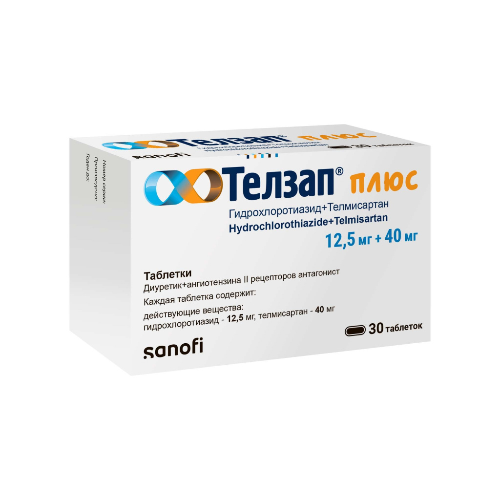 Препарат Телзап® Плюс - комбинированный препарат для снижения повышенного артериального давления, который содержит два действующих вещества: телмисартан (антагонист рецепторов ангиотензина II) и гидрохлоротиазид (диуретик, мочегонное средство).