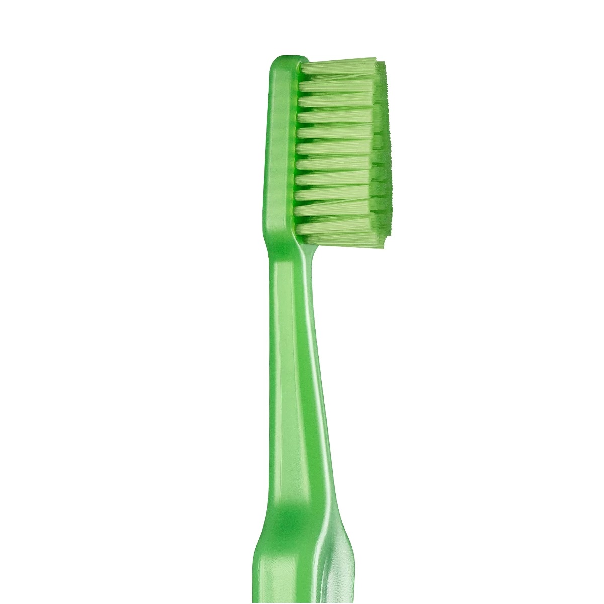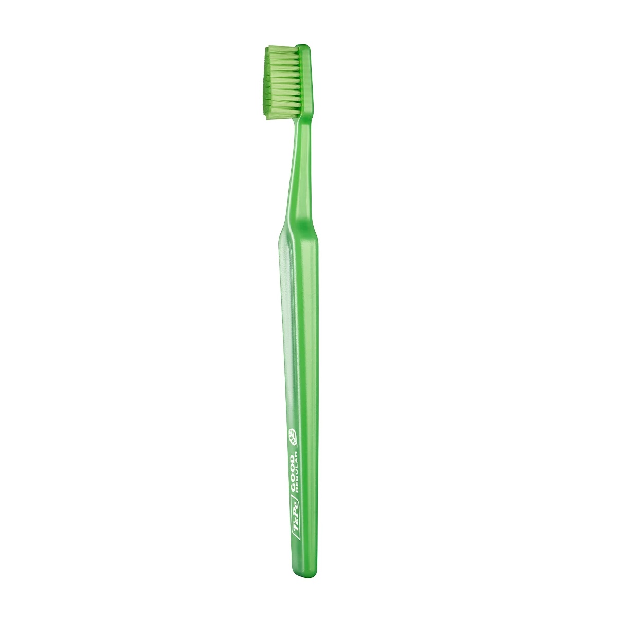 Зубная щетка TePe GOOD™ Regular, Soft подходит для взрослых и детей подросткового возраста. Удобная ручка из переработанного сахарного тростника с зауженной головкой делает чистку максимально комфортной, особенно в труднодоступных местах полости рта. Закругленные на концах щетинки из переработанного касторового масла эффективно очищают зубную эмаль, не травмируя ее. Нагрев шейку зубной щетки в горячей воде, вы можете придать ей удобный для вас угол наклона.