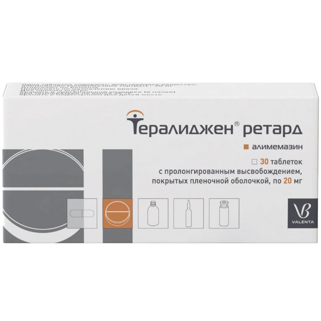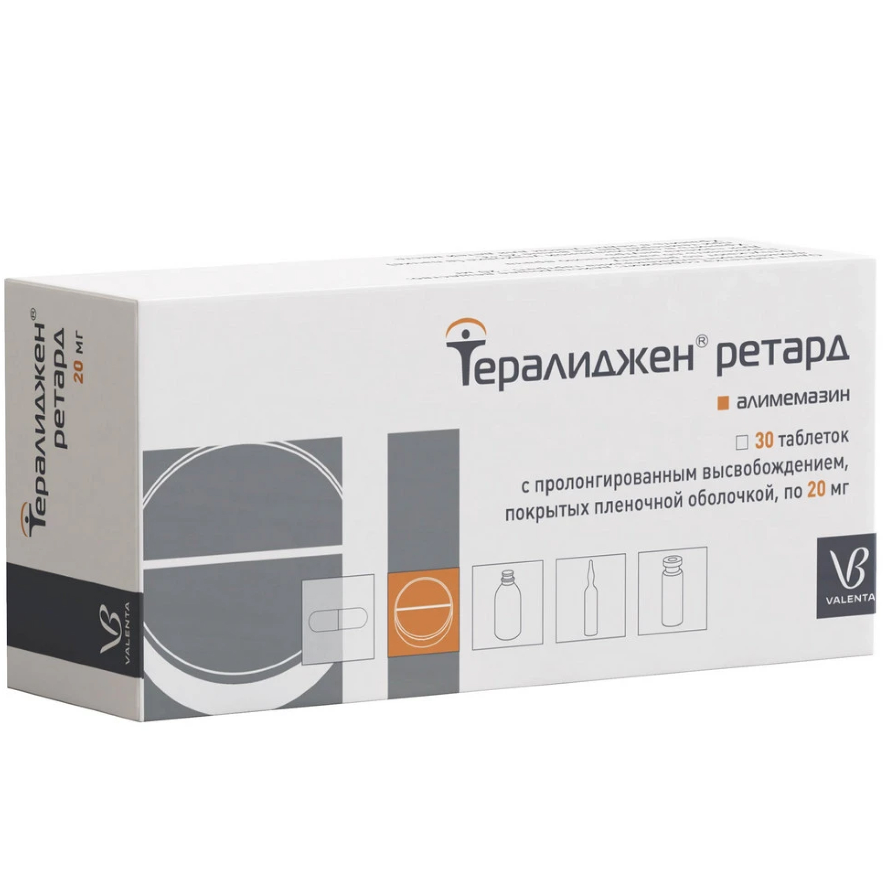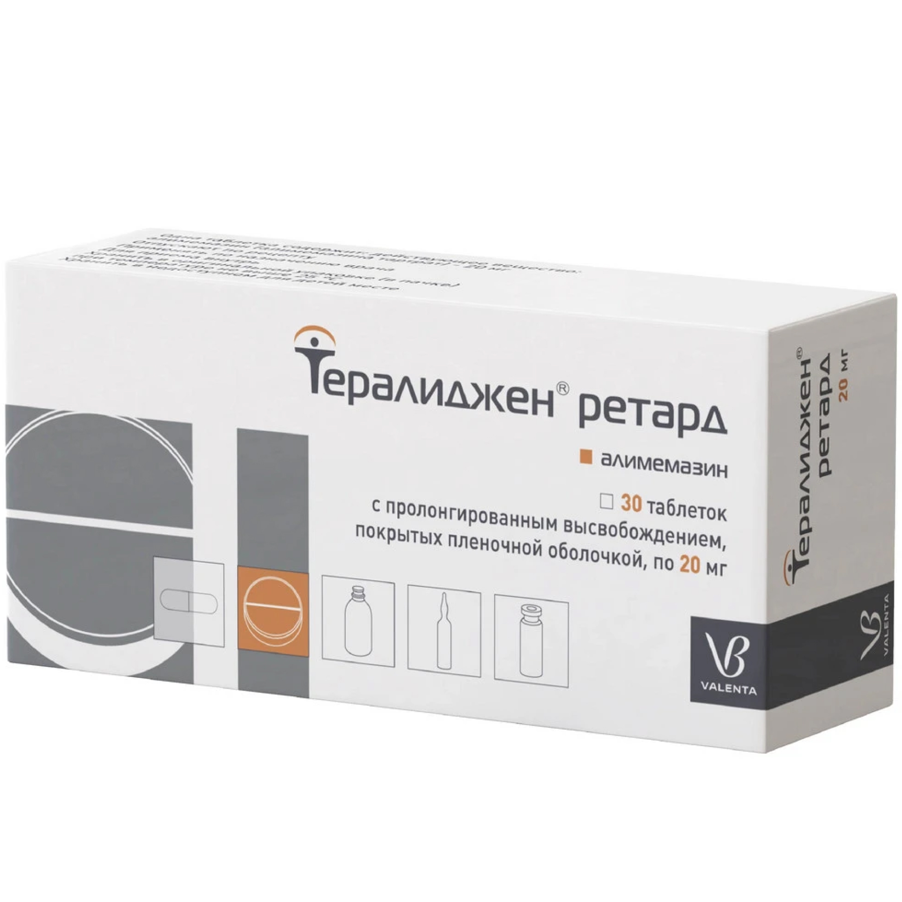 Быстро и полно всасывается при любых путях введения. Действие алимемазина начинается через 15-20 минут после введения. Максимальная концентрация (С max) алимемазина и площадь под фармакокинетической кривой (AUC) для препарата Тералиджен® ретард линейно зависят от принятой дозы. Время достижения максимальной концентрации алимемазина (Тmax) для препарата Тералиджен® ретард составляет 5-6 часов. Связь алимемазина с белками плазмы составляет 20-30 %. Метаболизируется в печени. Выводится почками - 70-80 % в виде метаболита (сульфоксида). Период полувыведения (Т1/2) алимемазина для препарата Тералиджен® ретард составляет 15-17 часов.