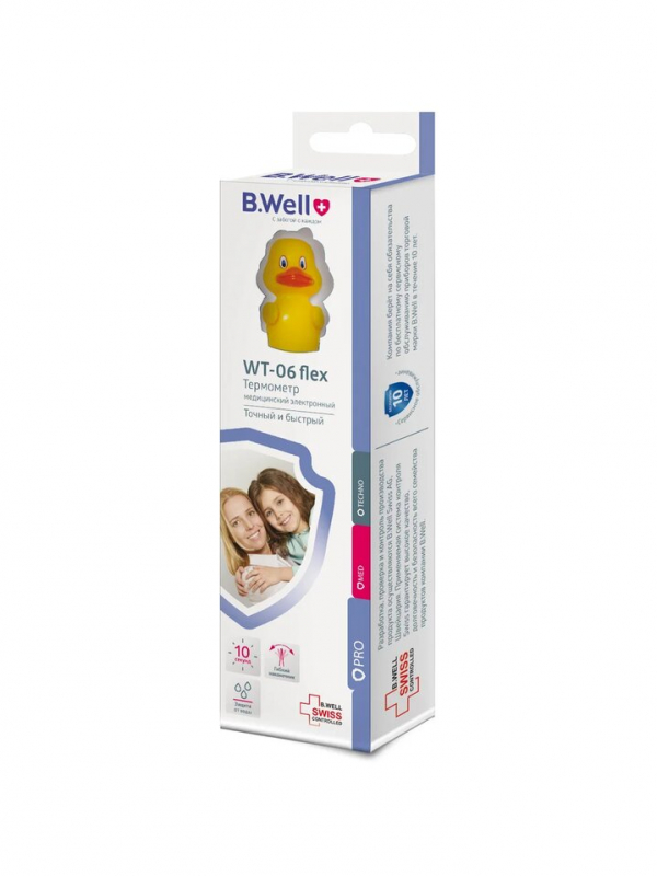 B.Well WT-06 “Утенок” позволяет измерять температуру со скоростью от 6-ти секунд, оснащен памятью на последнее измерение и системой звуковых сигналов при повышении температуры для максимально удобного использования.