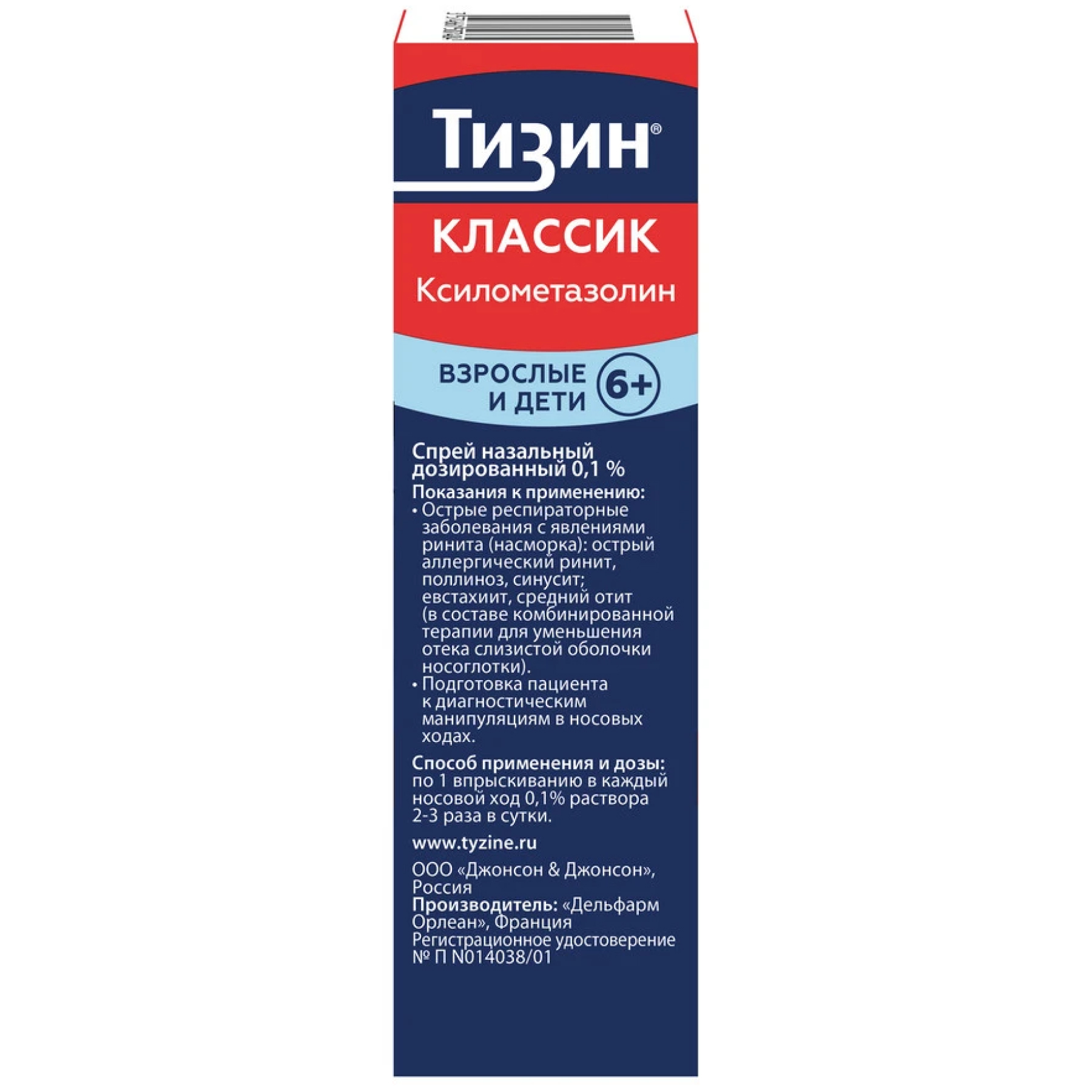 Не давайте препарат Тизин® Классик, 0,1 %, спрей назальный дозированный детям в возрасте от 0 до 2 лет вследствие риска неэффективности и вероятной небезопасности, поскольку эффективность и безопасность не установлены. Препарат в дозировке 0,1% не следует применять у детей в возрасте от 2 до 6 лет в связи с невозможностью обеспечить режим дозирования.
