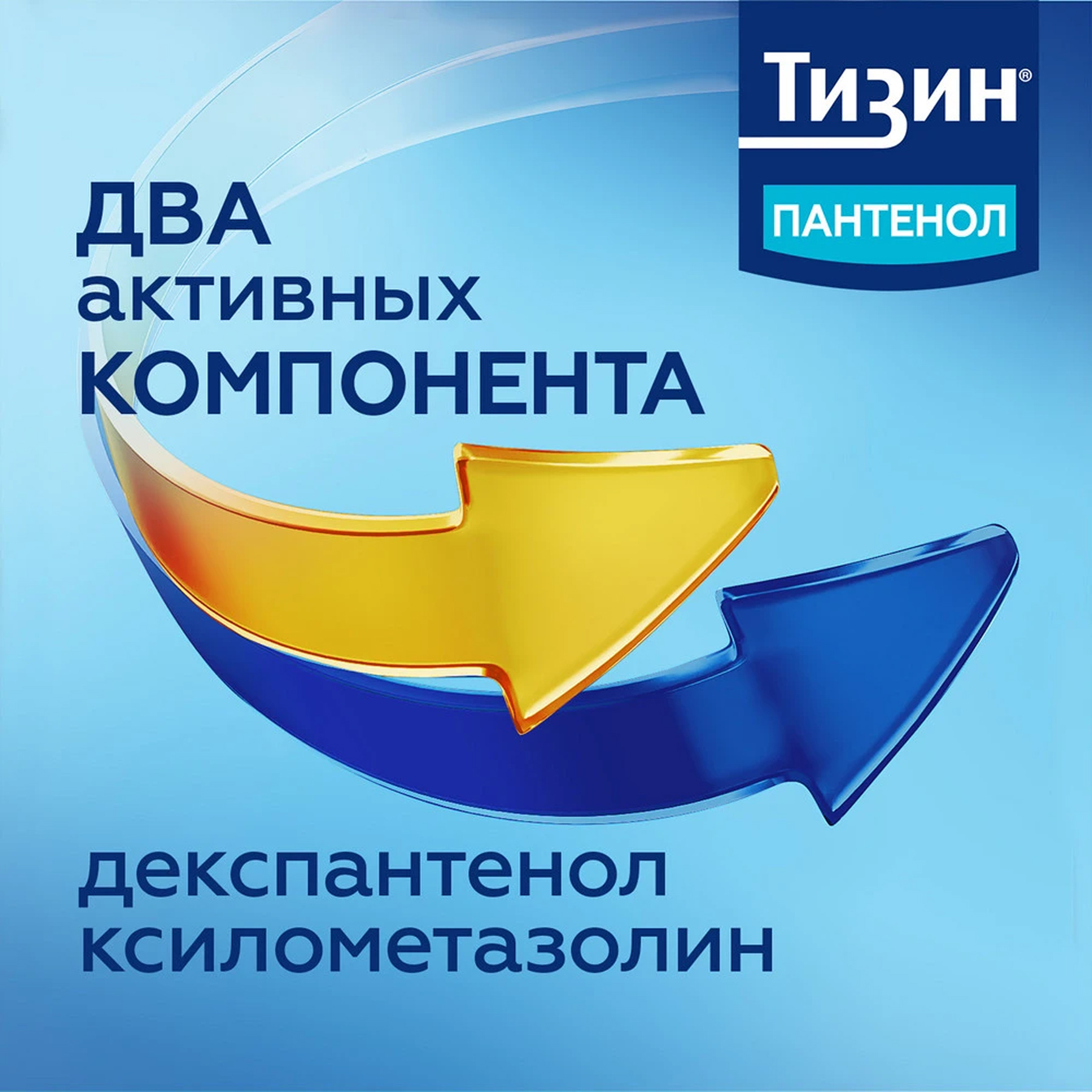 За счет комбинации ксилометазолина и декспантенола Тизин® ПАНТЕНОЛ обладает тройным действием: 1) снятие заложжености и отека носа, 2) восстановление слизистой, 3) противовоспалительный эффект. Тизин® ПАНТЕНОЛ содержит спираль с ионами серебра в распылителе, которая деактивирует бактерии. Подходит для взрослых и детей с 6 лет.