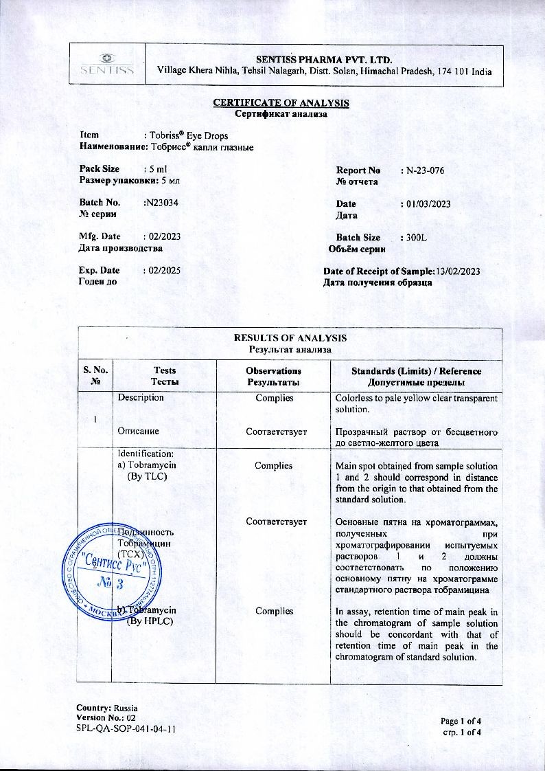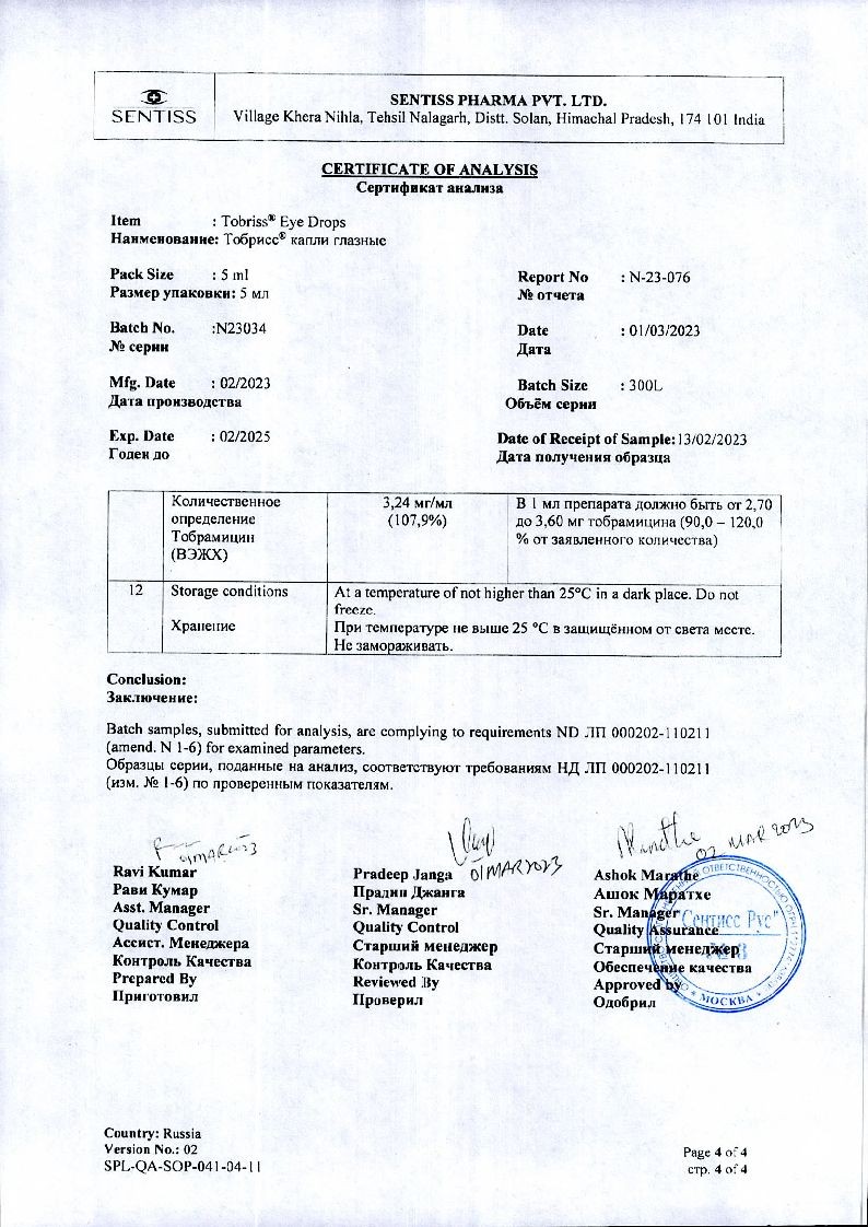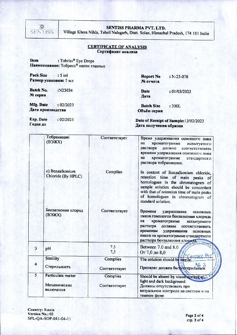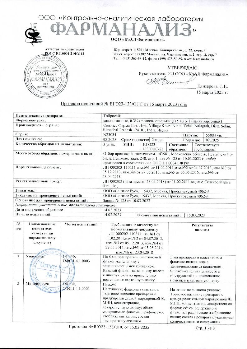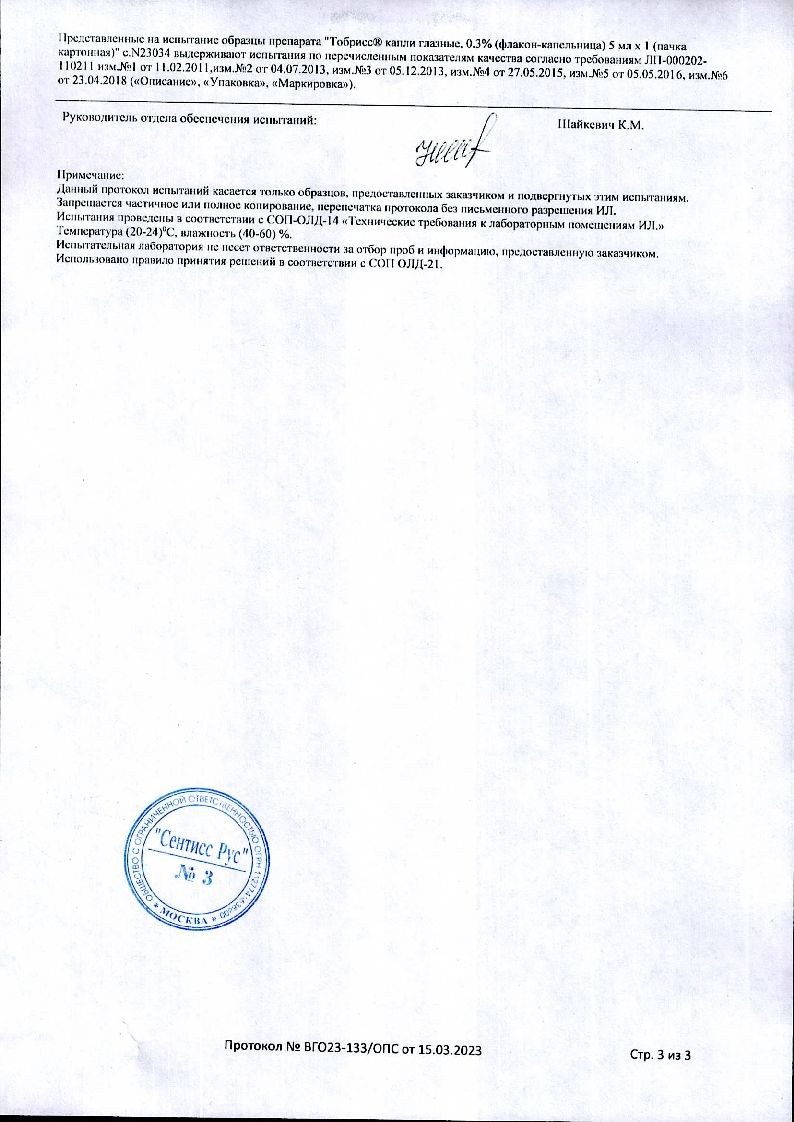 Исследований взаимодействия препарата с другими лекарственными средствами не проводилось. При совместном применении офтальмологических форм тобрамицина и кортикостероидов для местного применения в офтальмологии могут маскироваться клинические симптомы бактериальных, грибковых и вирусных заболеваний органа зрения, а также подавляться реакции гиперчувствительности.