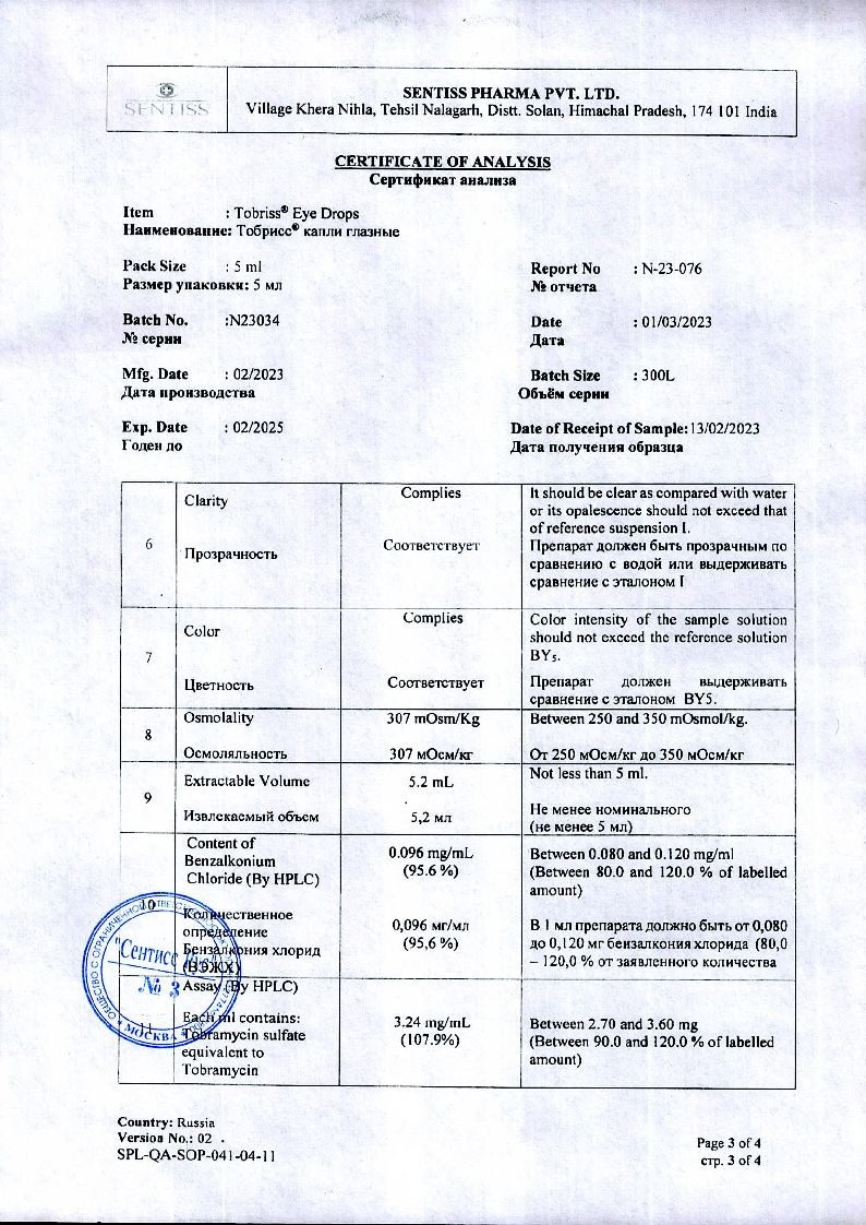 Исследований взаимодействия препарата с другими лекарственными средствами не проводилось. При совместном применении офтальмологических форм тобрамицина и кортикостероидов для местного применения в офтальмологии могут маскироваться клинические симптомы бактериальных, грибковых и вирусных заболеваний органа зрения, а также подавляться реакции гиперчувствительности.