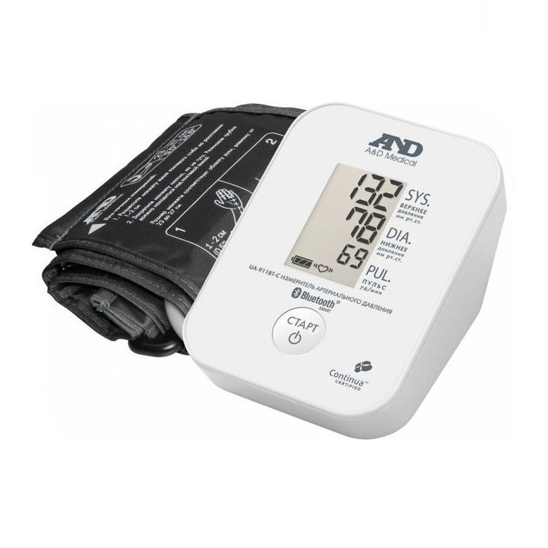 Цифровой прибор для измерения артериального давления и частоты пульса AND UA-911 BT-C, с безболезненной стандартной манжетой AND для рук с длиной окружности плеча 22 - 32 см. - современная модель, которая предназначена для применения в качестве индивидуального средства контроля артериального давления и частоты пульса, с возможностью беспроводной передачи данных измерений по Bluetooth 4.0.